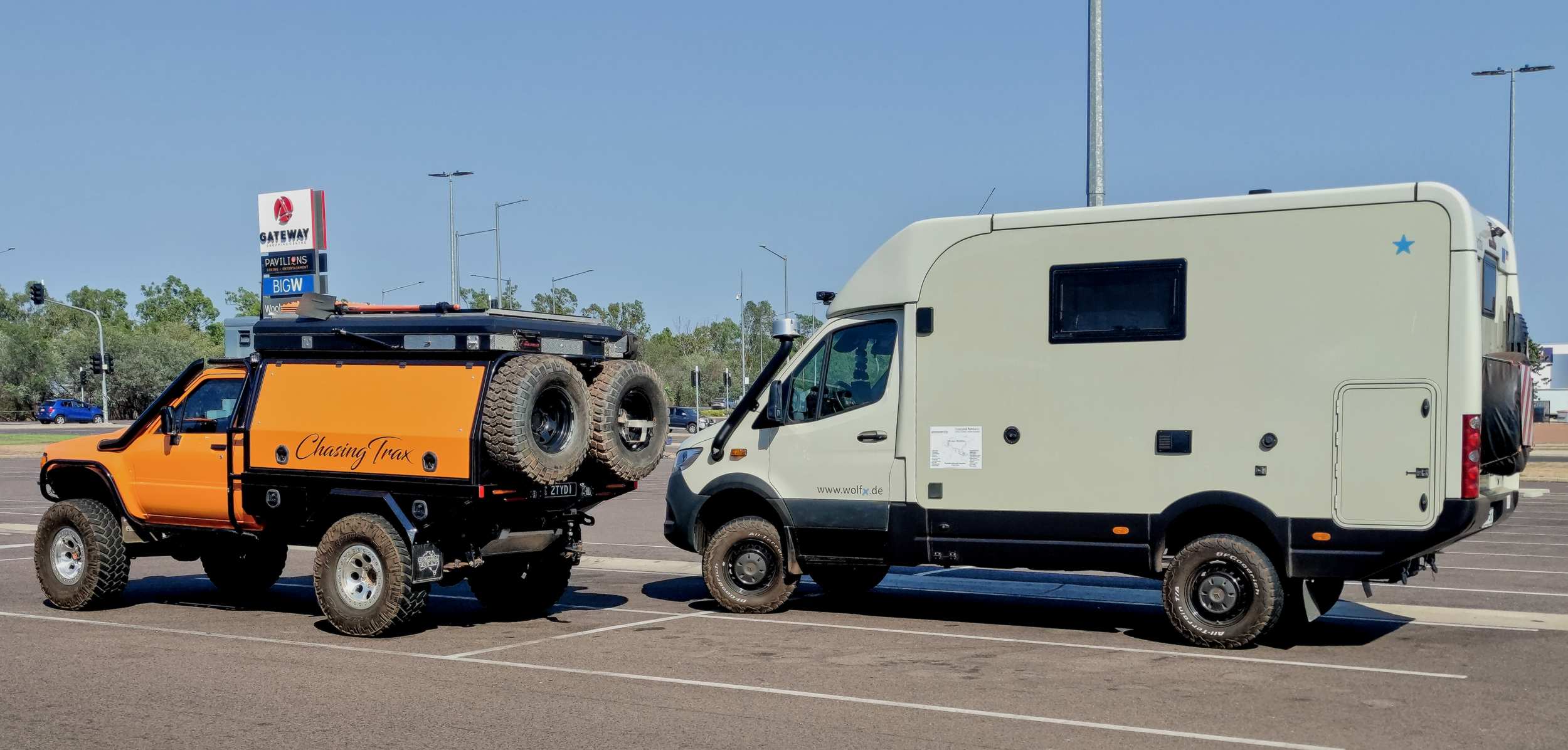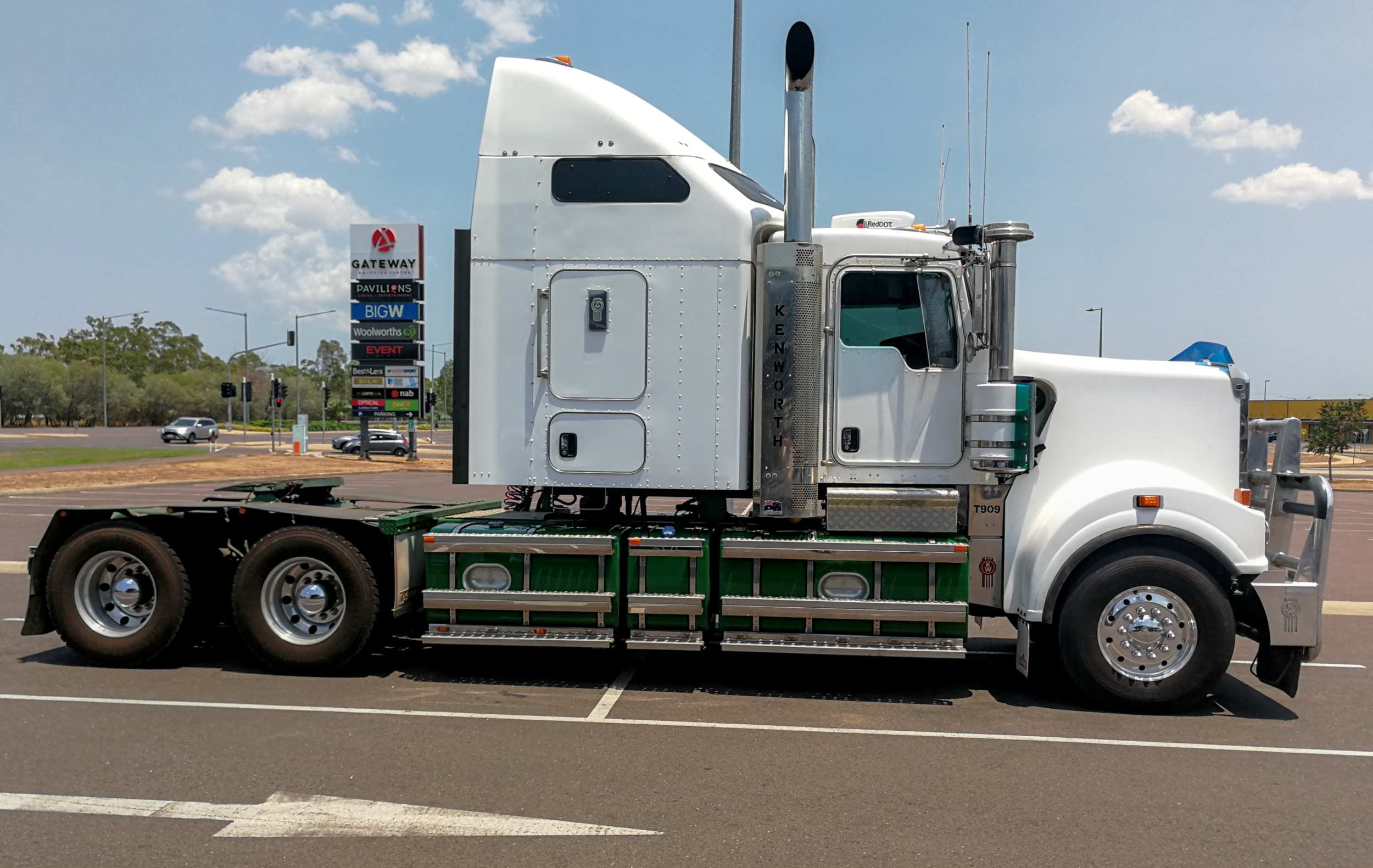Starker Pickup mit Bertha auf dem Parkplatz einer Mall in Palmerston.