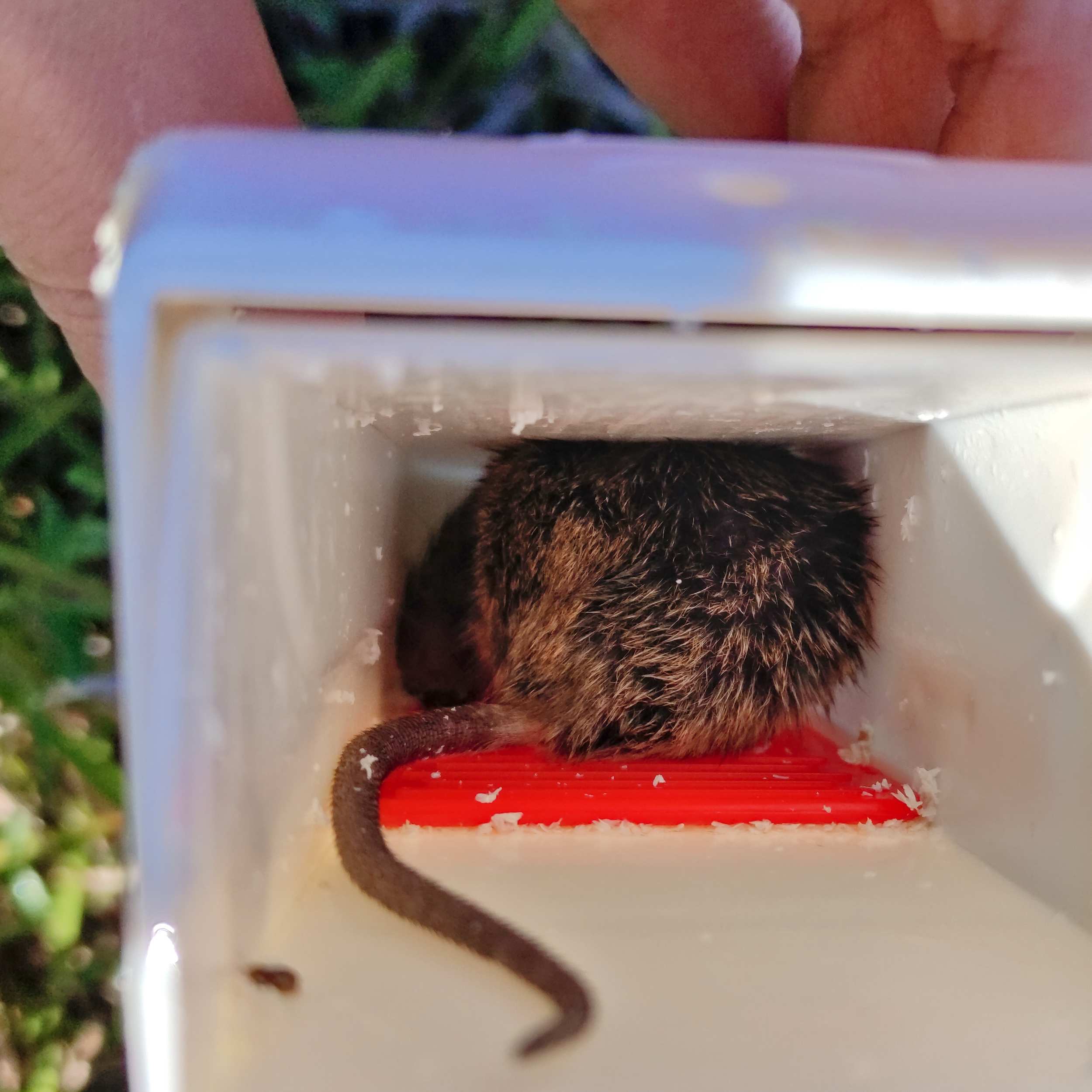 Eine zweite Maus ist in der Nacht in die Falle gegangen und wurde ausgesetzt. Hoffentlich war es das jetzt.
