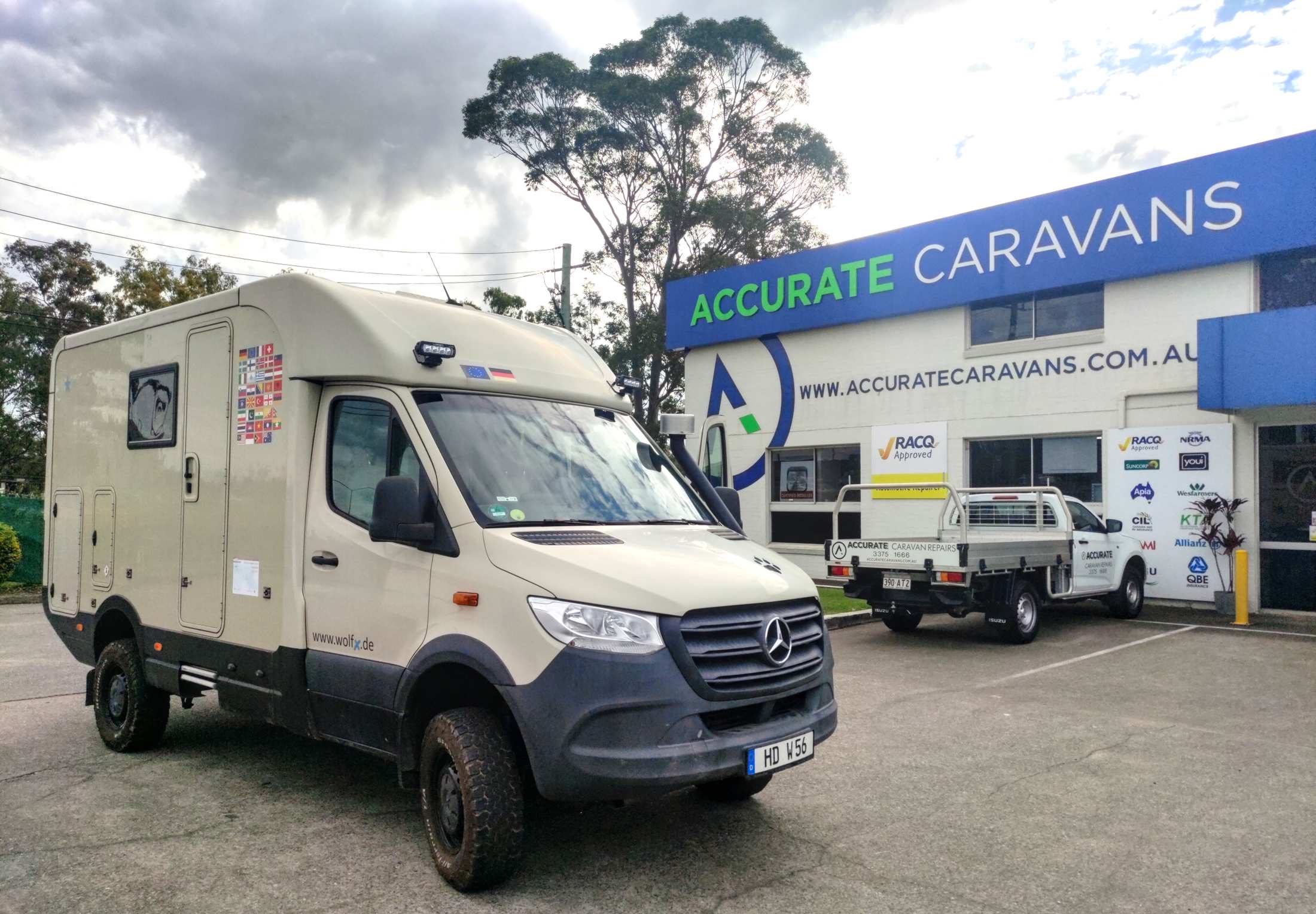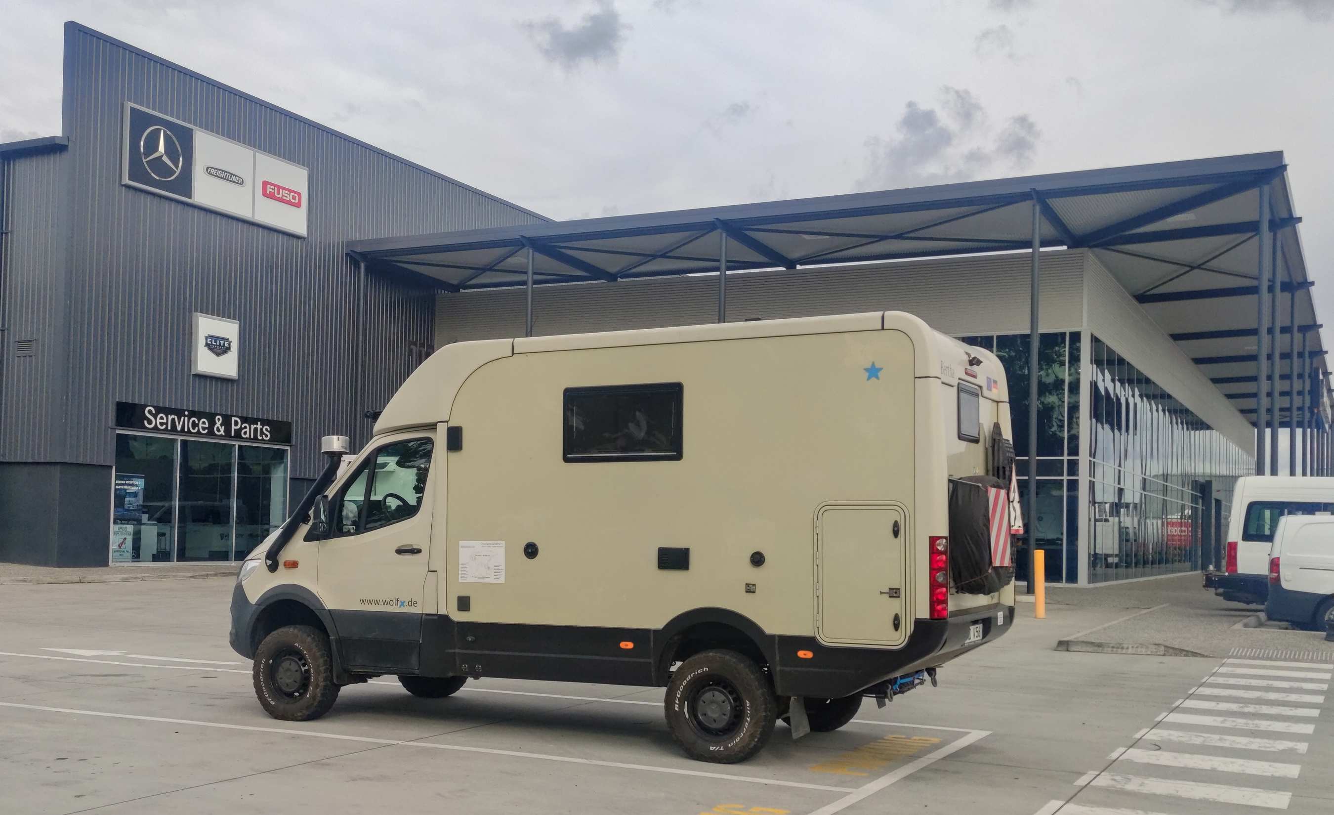 Die Fahrt nach Brisbane über die Autobahn war problemlos. Wir stehen jetzt bei der riesigen Vertretung von Mercedes-Benz-Vans, wo wir morgen um 9 Uhr unseren Termin haben, in einem Industriegebiet ruhig neben der Straße.