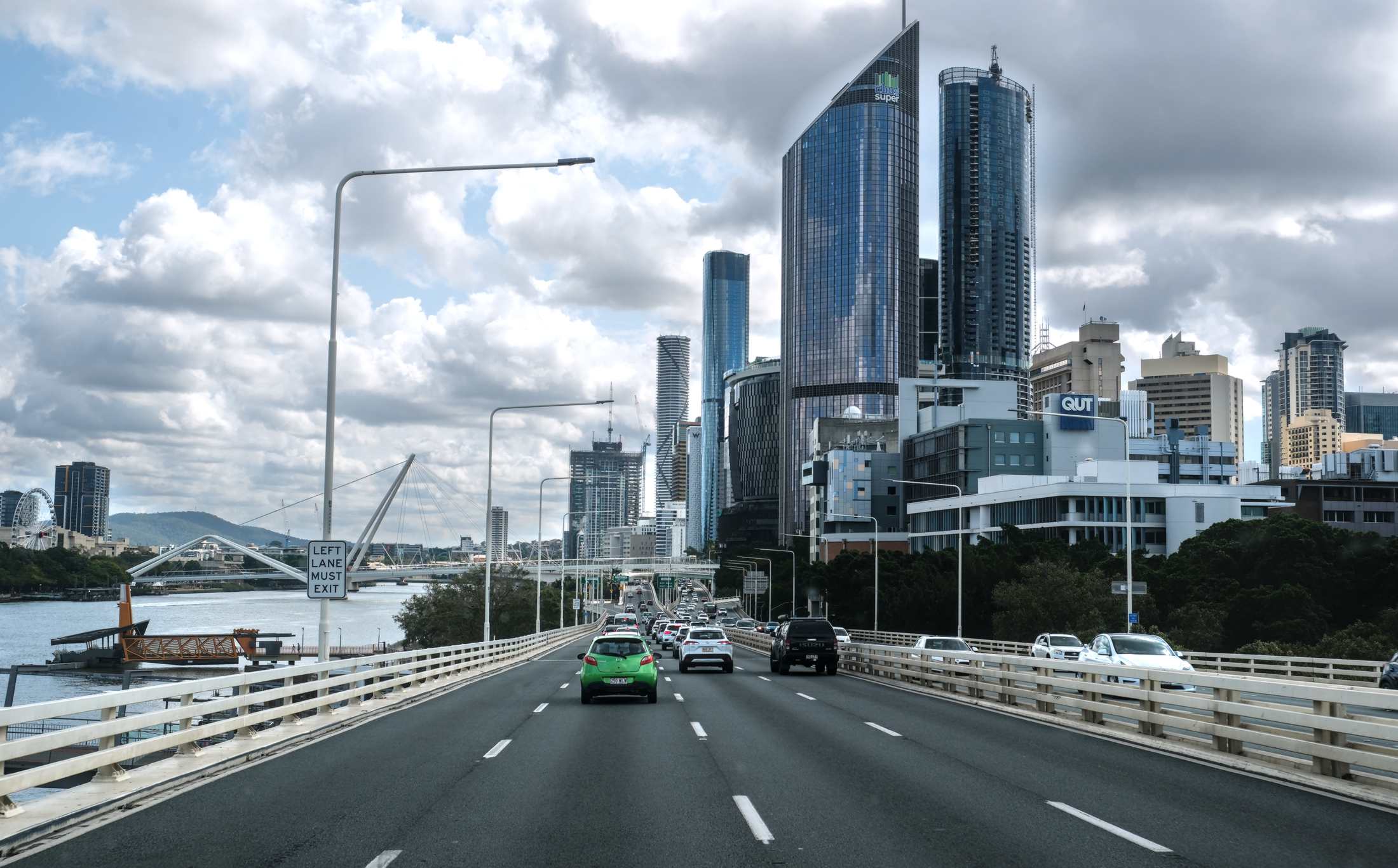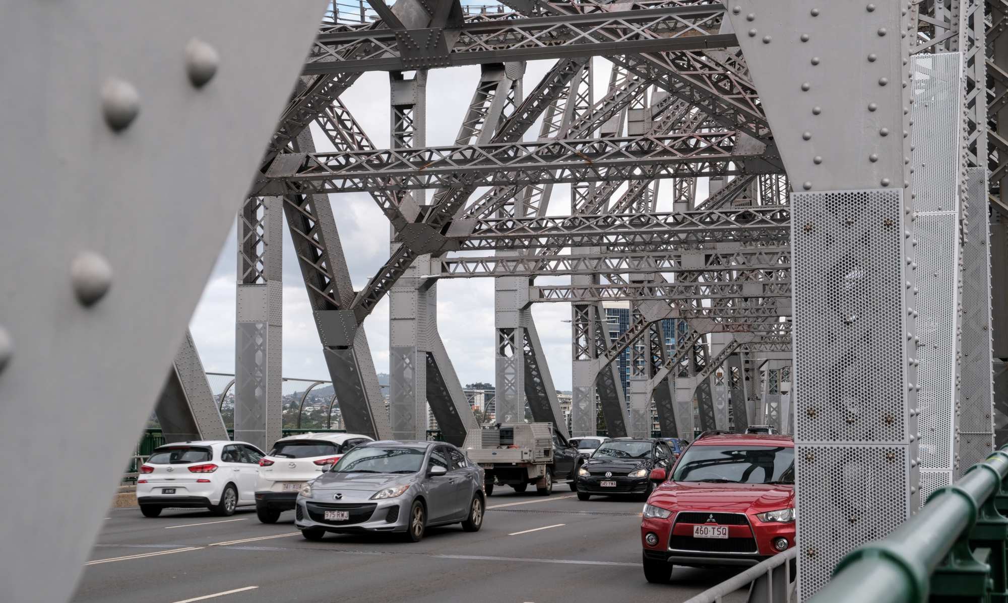 Wir laufen über eine der Hauptattraktionen der Stadt, die 'Story Bridge', die 1940 eröffnet wurde und das Stadtbild entscheidend prägt. Ihre Zwillingsschwester überspannt übrigens in Montreal (Kanada) den Sankt-Lorenz-Strom.