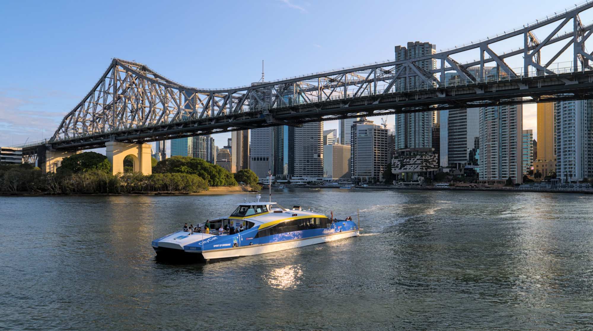Mit einer der vielen 'City Cats' begeben wir uns auf eine Flussfahrt in den Abend hinein.