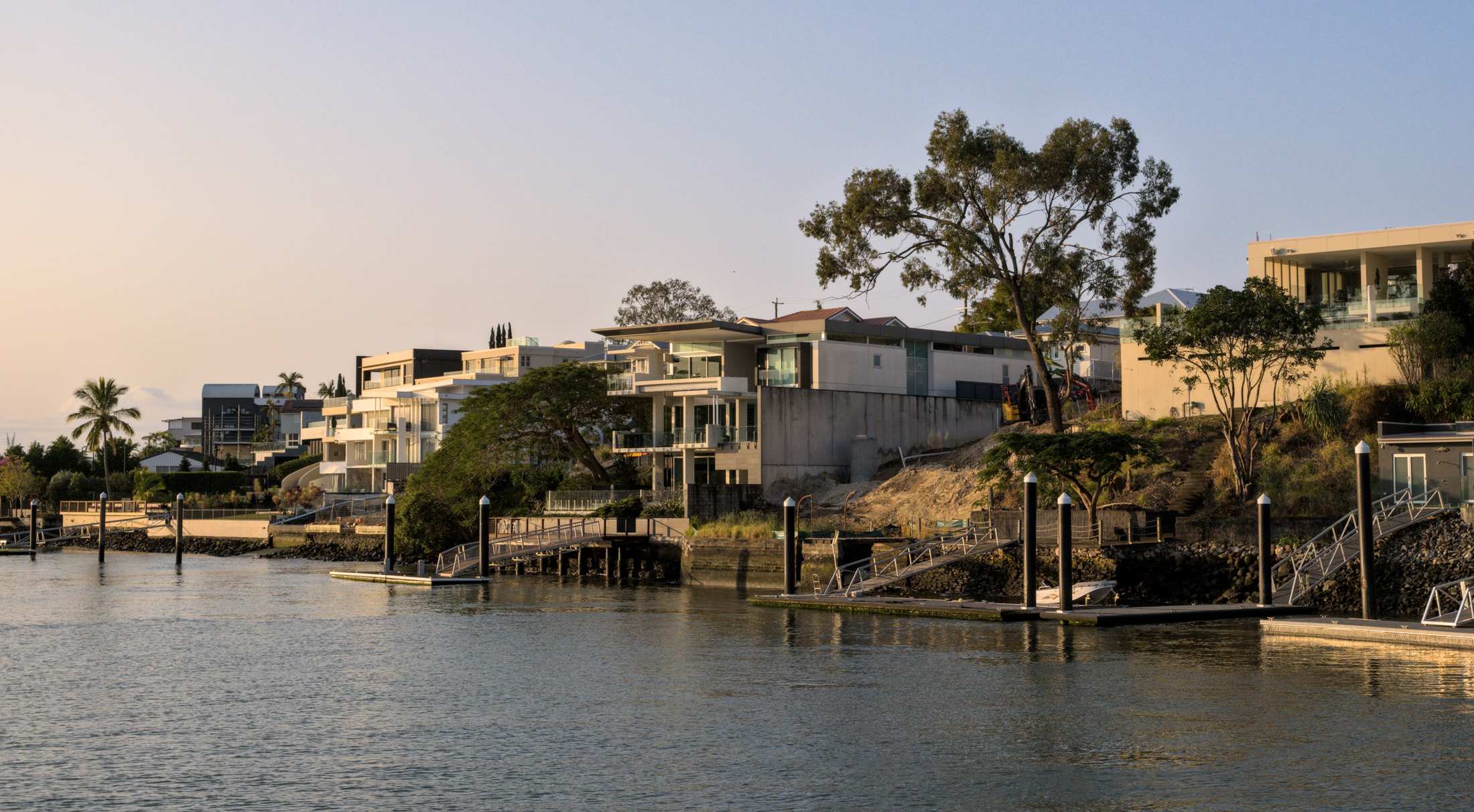 Vorbei an Yachthäfen und schicken Villen mit eigenen Bootsanlegern.