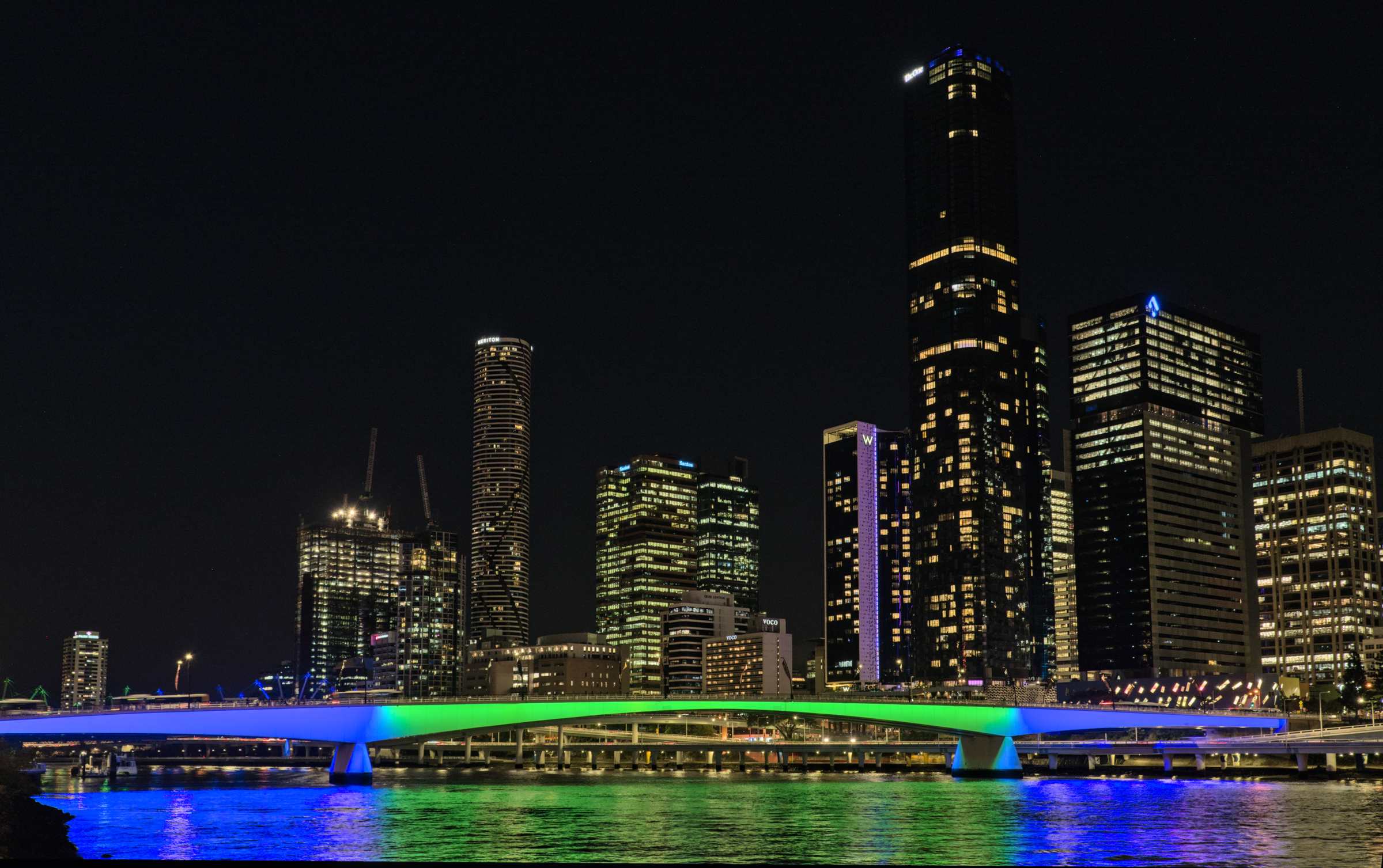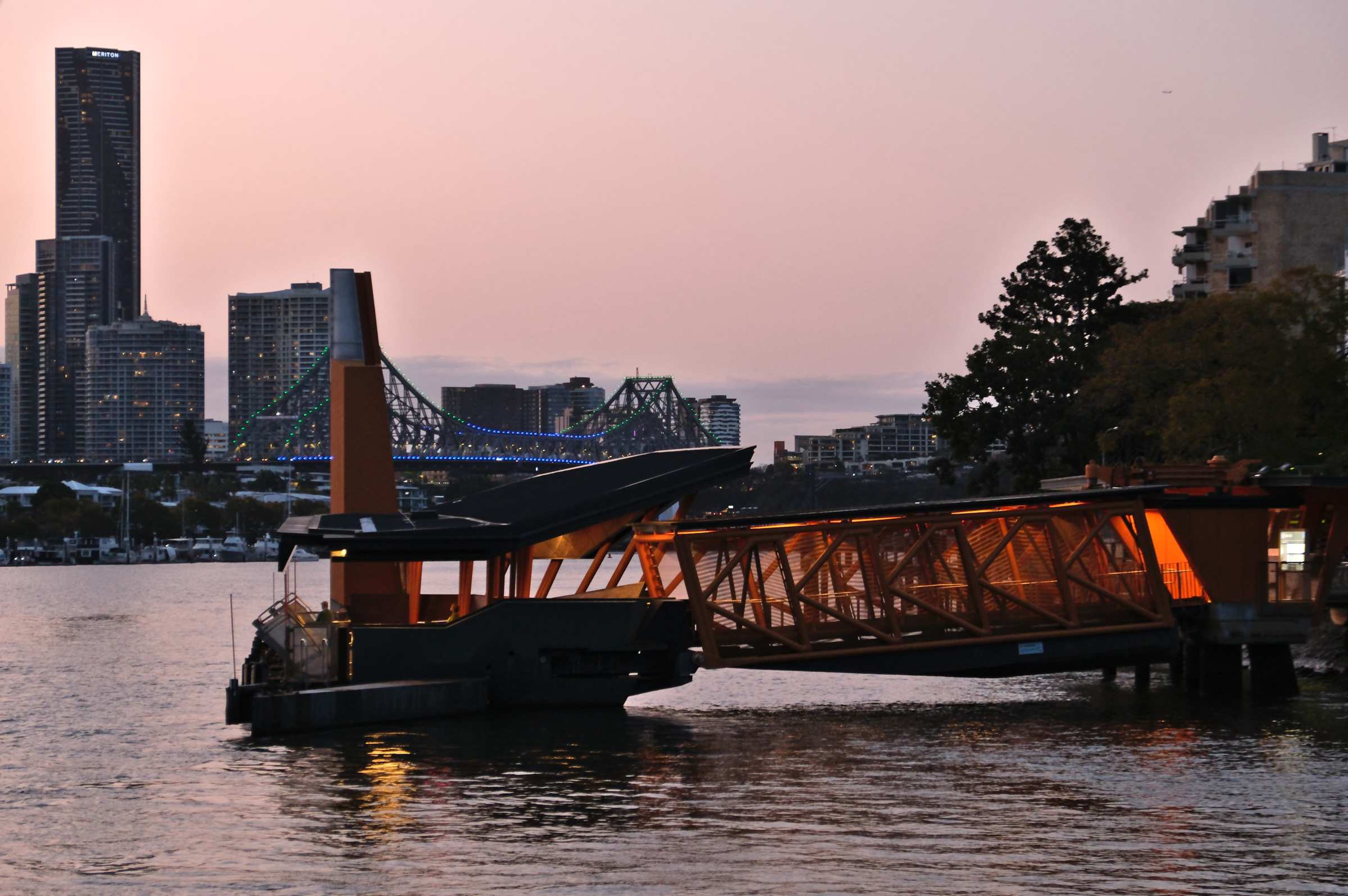 Heute sind wir mit einer Fähre, natürlich auch zum obigen Preis, fast zwei Stunden auf dem Brisbane River durch die Stadt geschippert. Nach Sonnenuntergang wurde es kühl an Bord. An den hell erleuchteten Hochhäusern und unter den in bunten Farben erstrahlenden Brücken hindurchzufahren hat aber mehr als entschädigt.