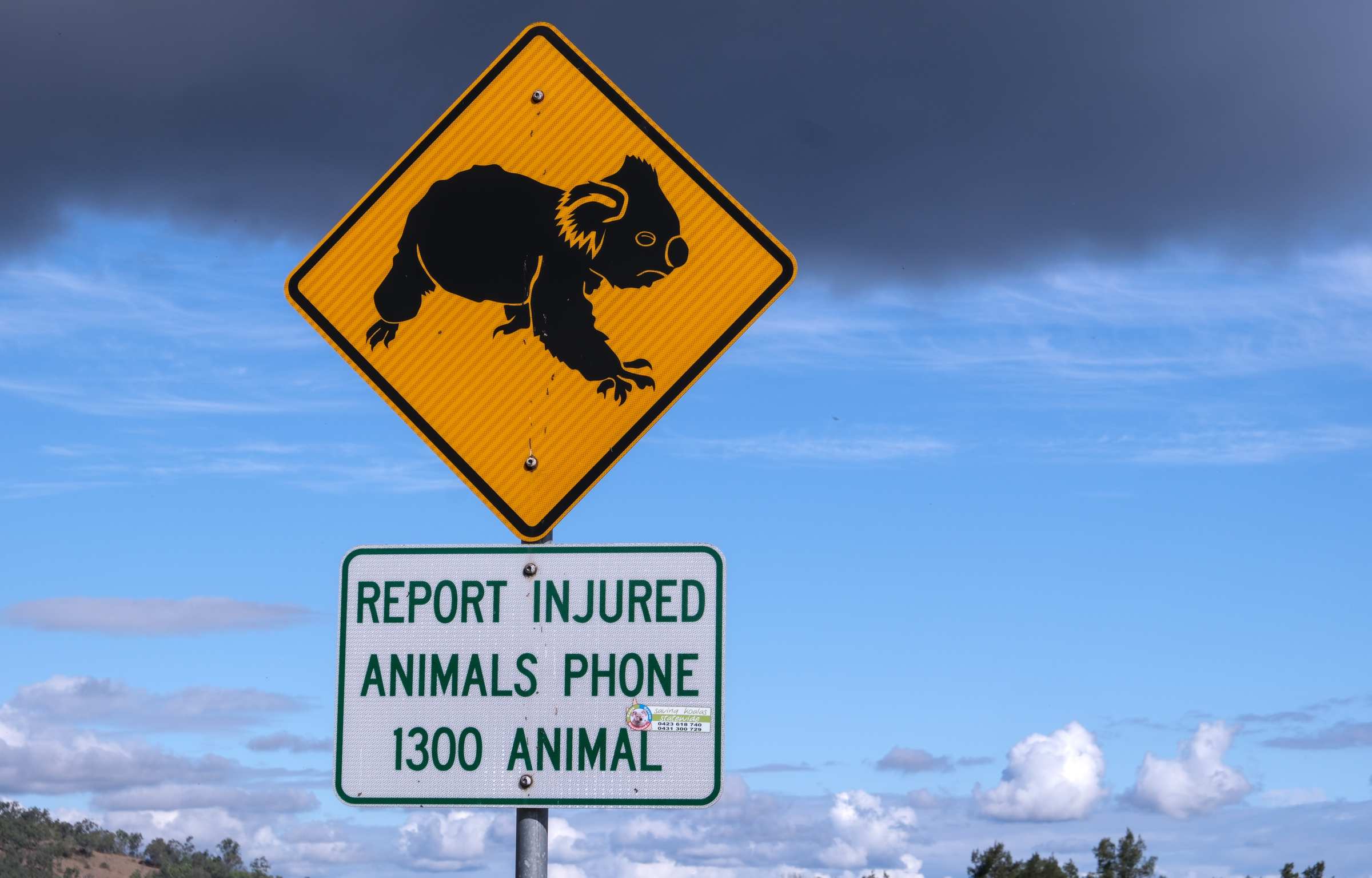 Kurz vor dem Wivenhoe-See dieses Schild und wenig später entdeckt Ulrike diesen Burschen. Unser erster wilder Koala. Die nächsten Tage lässt er sich nicht mehr blicken. Glück gehabt.