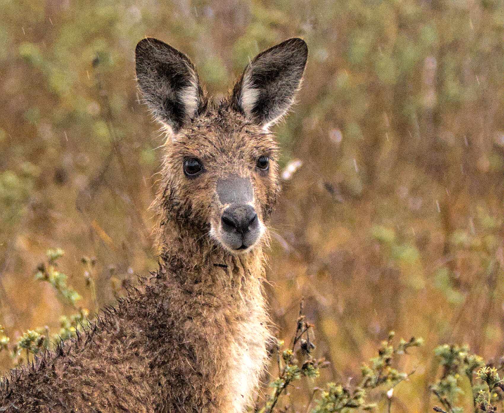 Auch die Kängurus schauen nach ein paar Regentagen ziemlich bedröppelt aus der Wäsche.