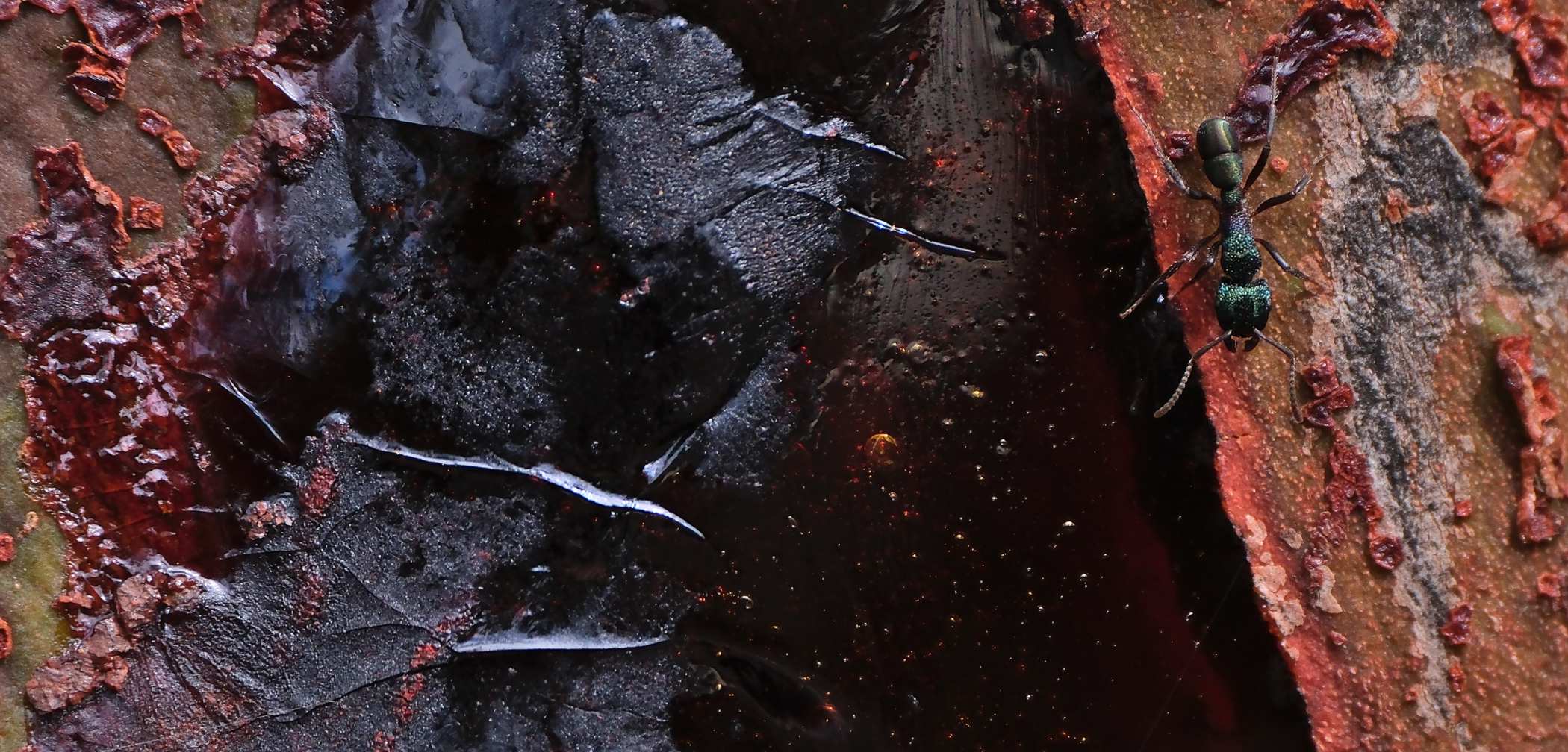 "Grüne-Kopf-Ameise" (Rhytidoponera metallica) auf einem Eukalyptusbaum.