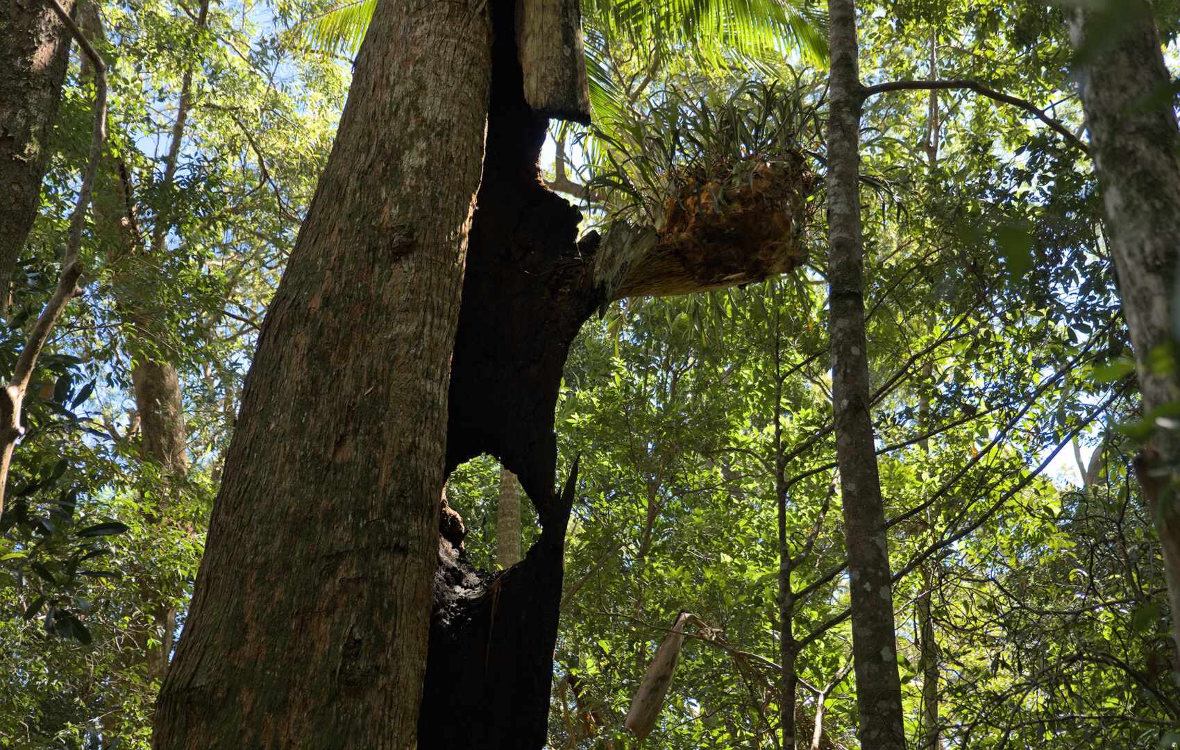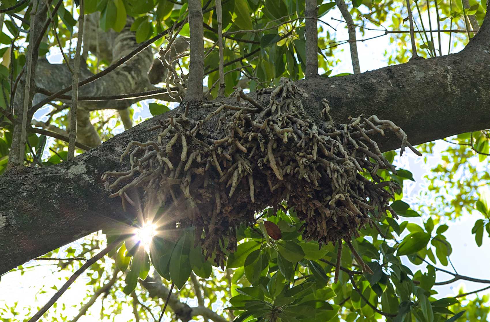Das Leben einer Würgefeige beginnt im Kronendach eines Baumes. Später schickt sie Luftwurzeln in Richtung Boden an ihrem Wirtsbaum hinunter, stranguliert und tötet ihn dadurch. Während der Baum verrottet, bleibt die hohle Feige stehen.