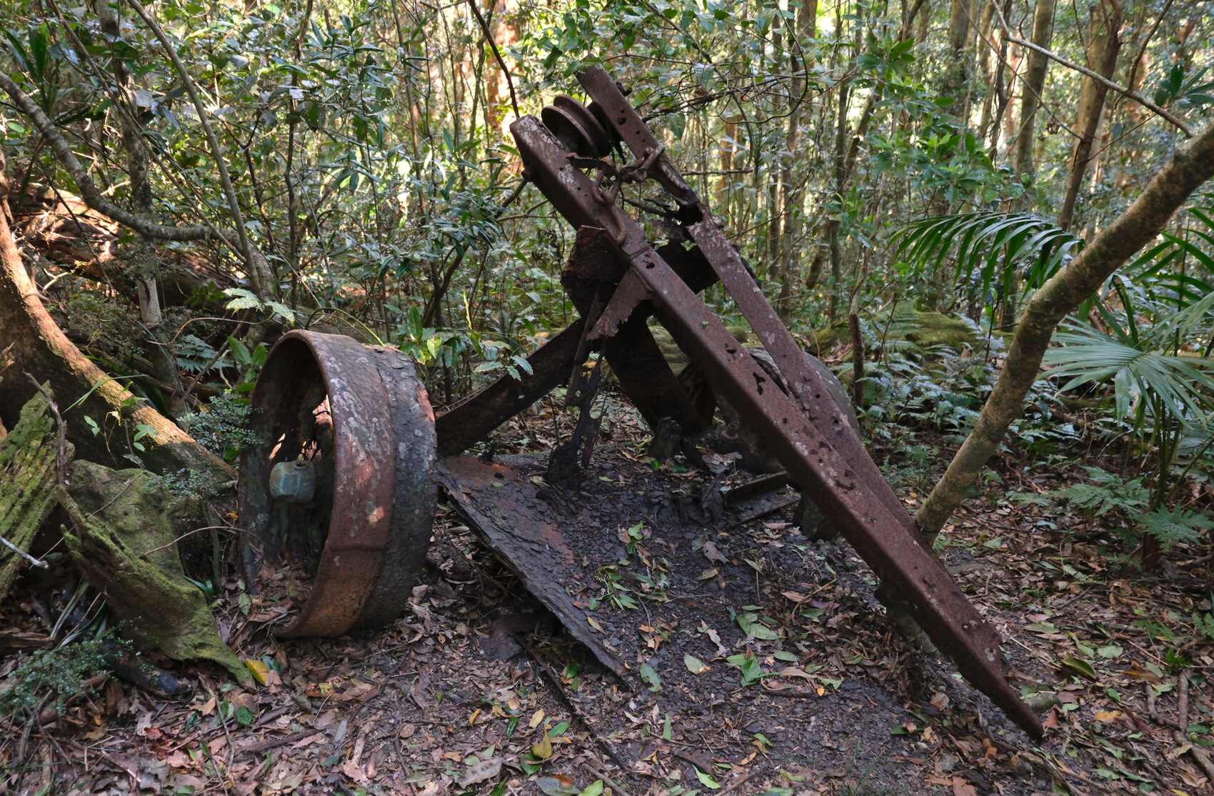 Alte Seilwinde, um gefällte Bäumstämme zu ziehen, aus der Zeit vor der Einrichtung des Nationalparks.
