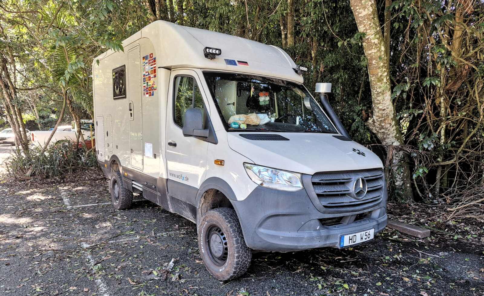 Vor vier Tagen sind wir dann aufgebrochen, haben bei einem Bushwalk den Mount D'Aguilar und das Wrack einer Piper Commanche, 1977 abgestürzt, besucht. Toller Regenwald, zum Gipfel hin wenig Wegspuren, kaum ein Durchkommen. Auf einem nahen Parkplatz wurde Bertha fotografiert, das Bild an ein deutsches Ehepaar weitergeleitet, das uns daraufhin per eMail zu sich nachhause eingeladen hat.