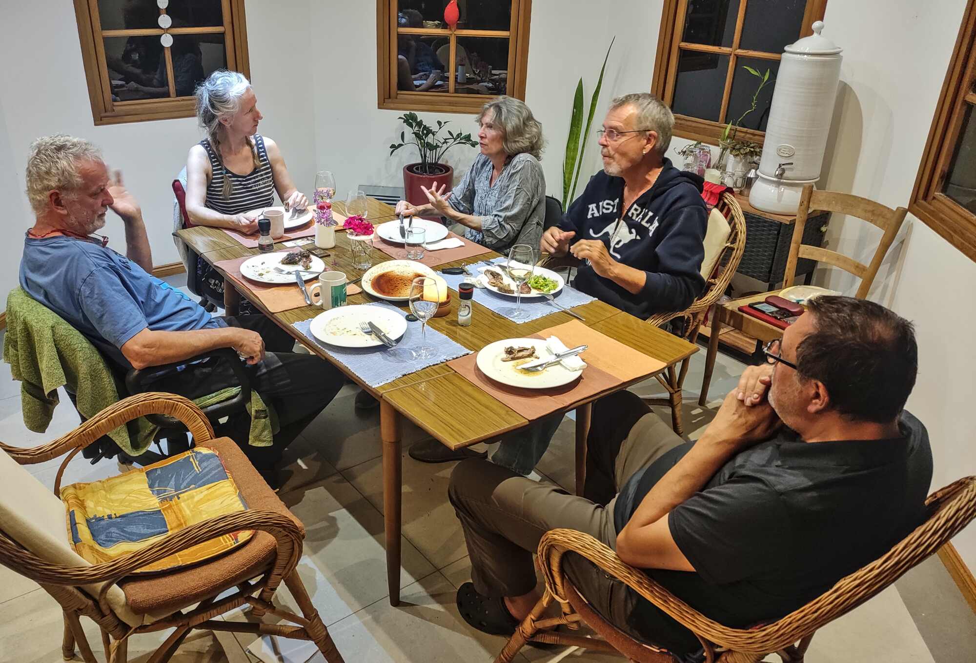 Dieses Foto wird von einem australischen Paar gemacht, ohne dass wir das bemerken. Sie schicken es an ihre deutschen Nachbarn und die laden uns per Mail, deren Adresse sie über unsere Webseite (URL auf Bertha) gefunden haben, zu einem Treff bei sich zuhause ein. Wir sagen spontan zu.