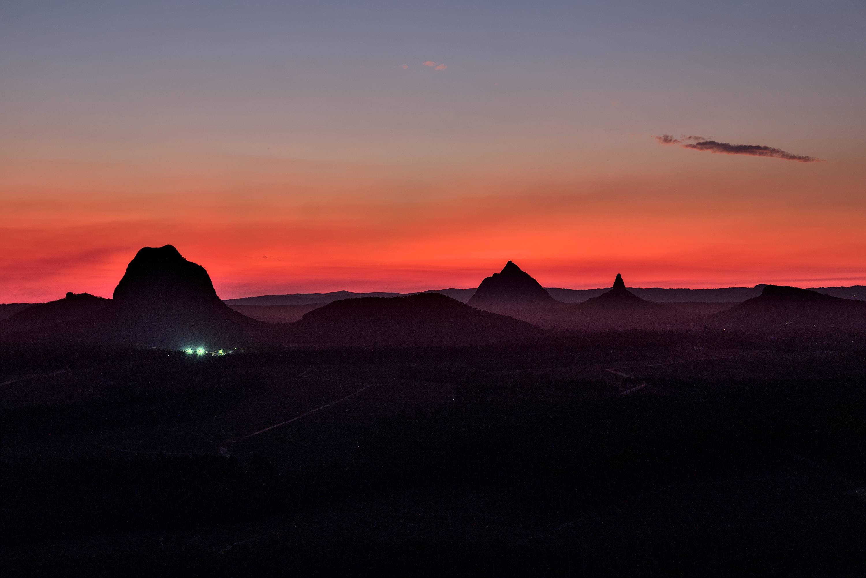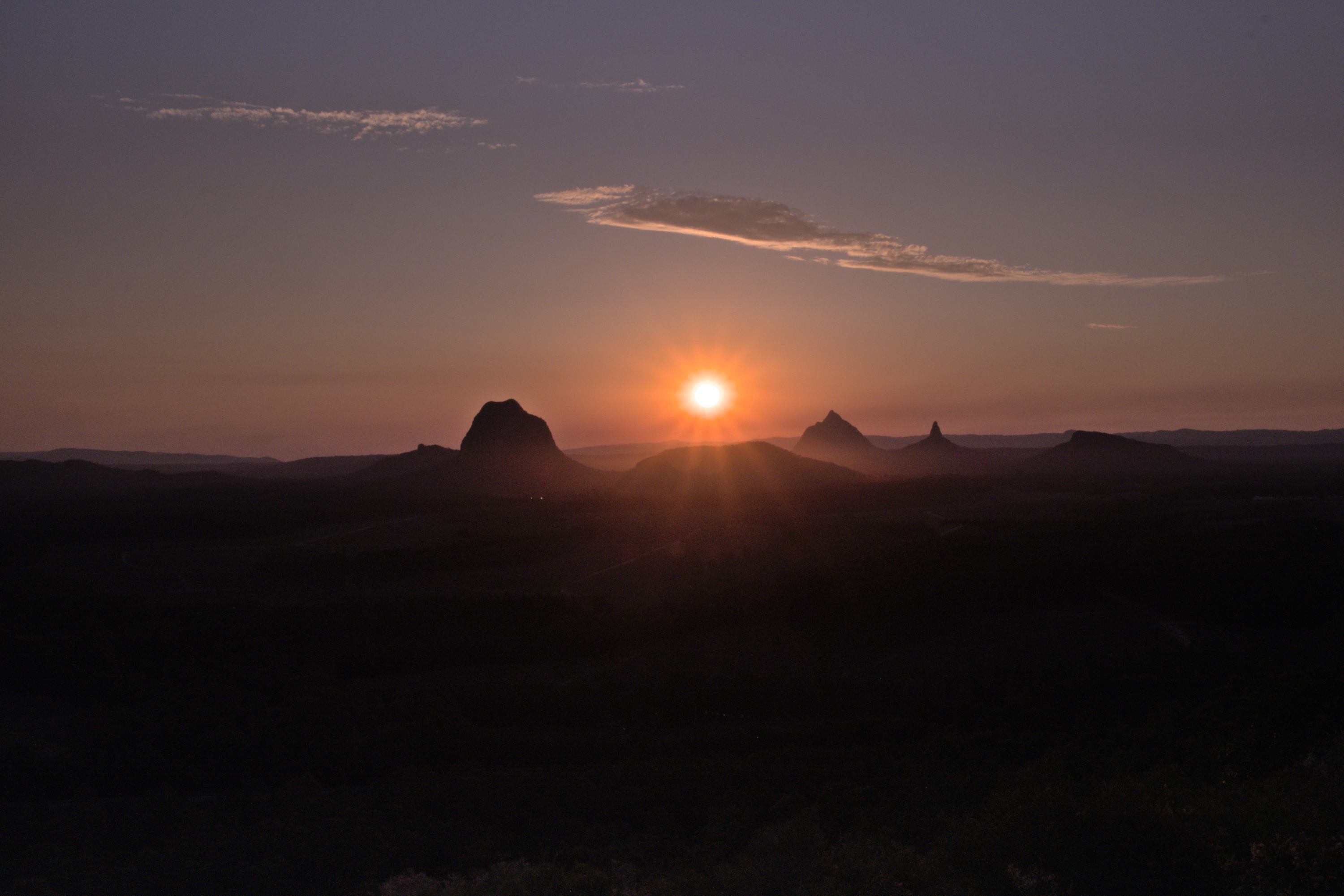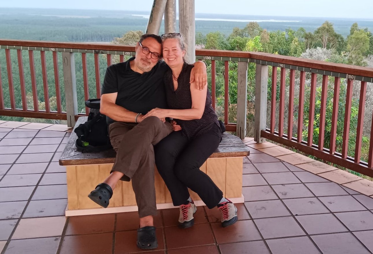 Eine ganze Woche waren wir jetzt bei Mandy und Michael, die uns sehr herzlich aufgenommen haben. Vor drei Tagen kamen noch unsere 'Landweg-Australien Mitreisenden' Conny und Kurt hinzu, die uns eigentlich nur besuchen wollten, aber auch gleich "dabehalten" wurden. Das war eine wohltuende Zeit alle miteinander. Die Schweizer sind heute früh wieder abgereist, zu einem Werkstatttermin und der anstehenden Verschiffung nach Neuseeland. Wir sind mit unseren Gastgebern wunderschön nach Maleny und Montville gefahren. Von einer Höhenstraße hat man prächtige Aussicht hinunter auf die Pazifikküste. Zum Sonnenuntergang waren wir auf dem 'Wild Horse Mountain', zwar nur 123 m hoch, aber mit Rundumsicht vom Feinsten. Die 'Glass House Mountains' bildeten die Kulisse im Vordergrund, phantastisch.