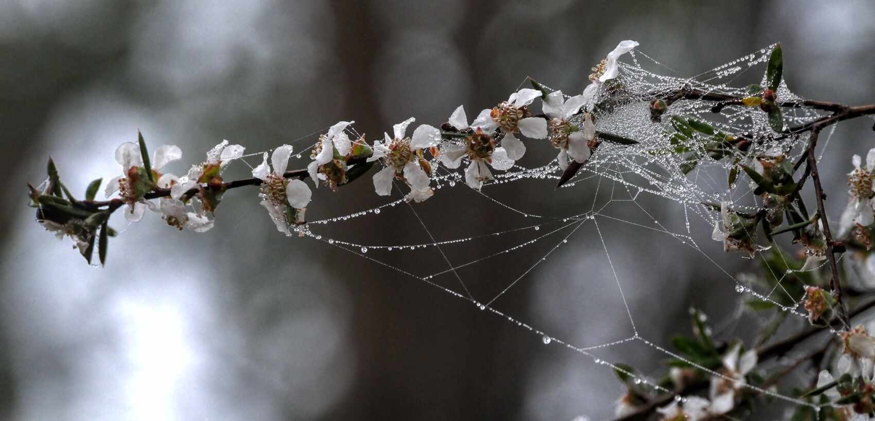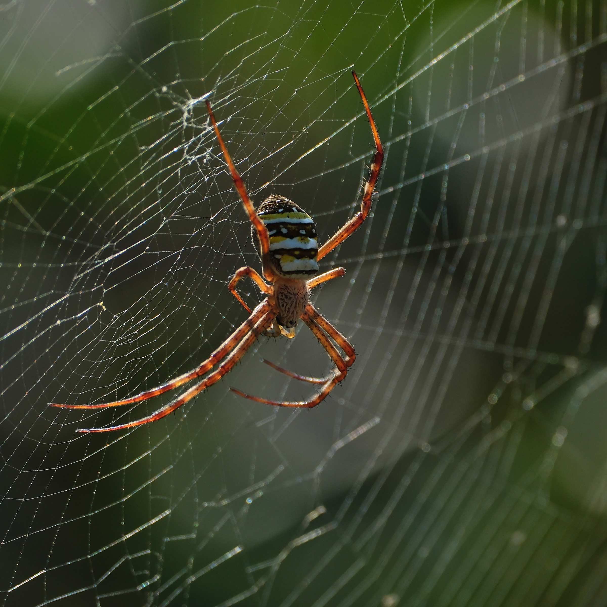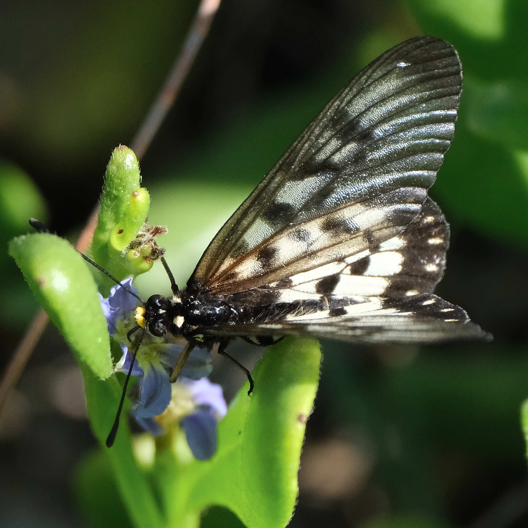 Glasflügelschmetterling(?) und Radnetzspinne.