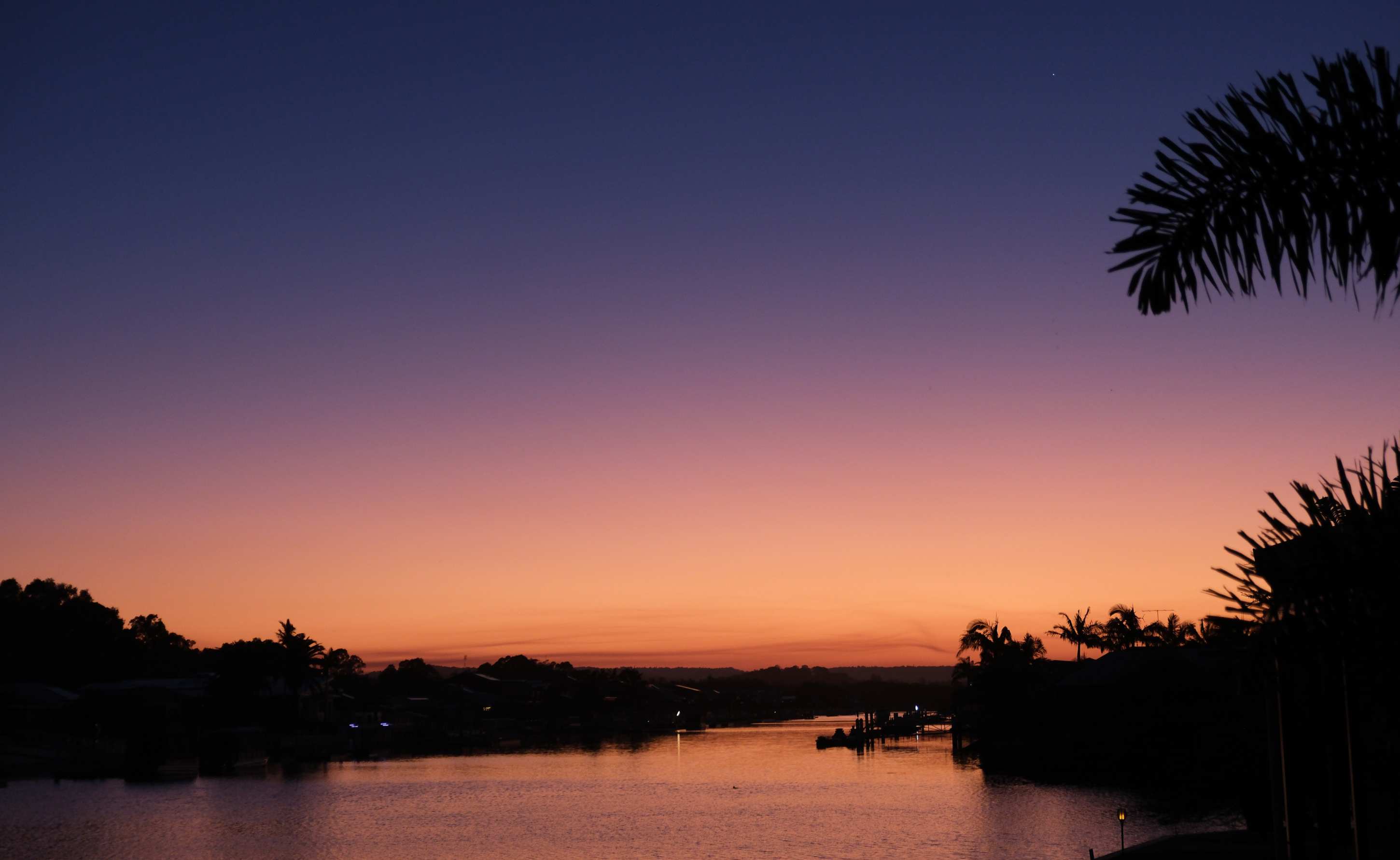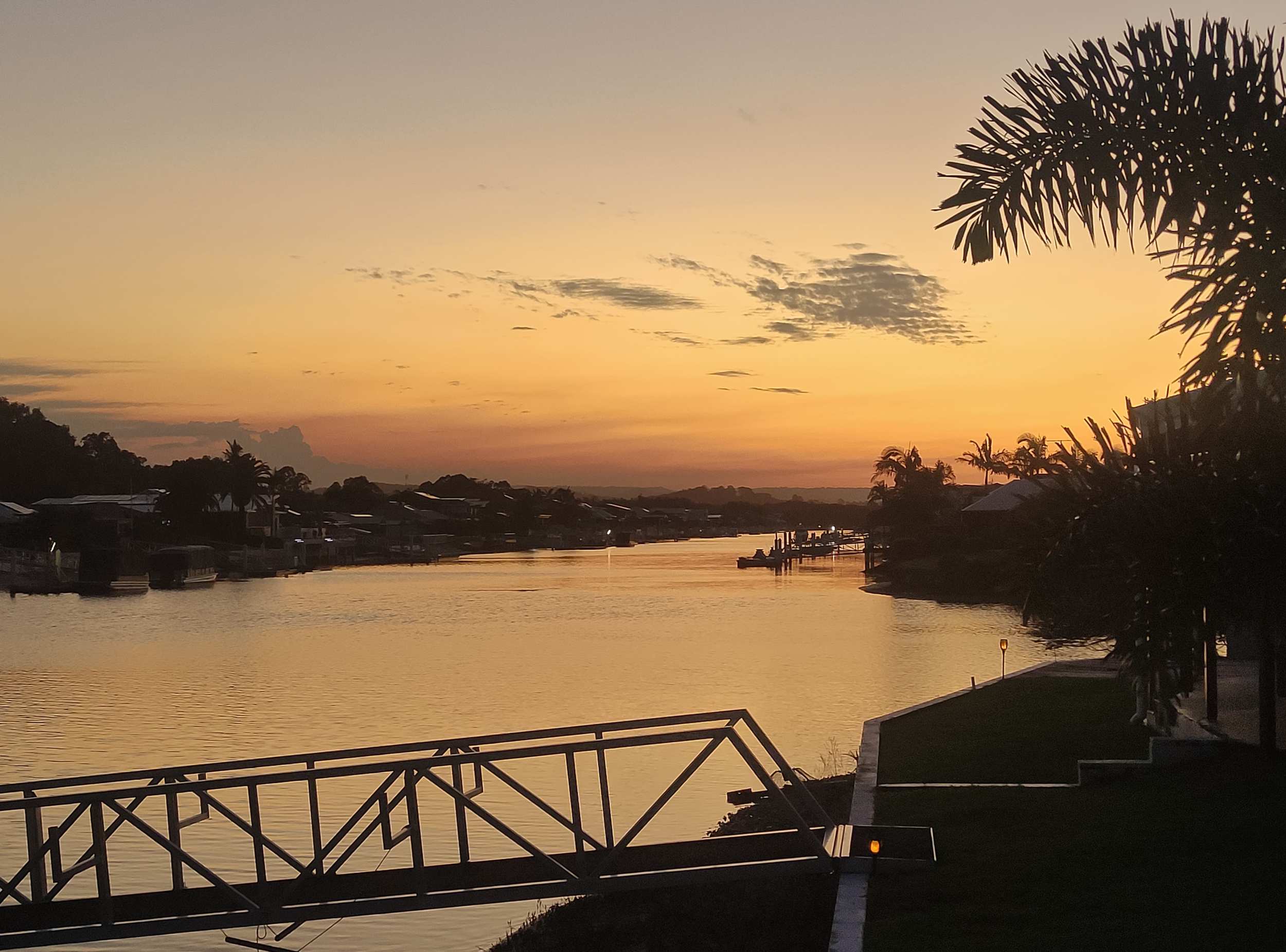 Gemeinsam besuchen wir den Bullocky Park am 'North Pine River' zu Sonnenuntergang.
