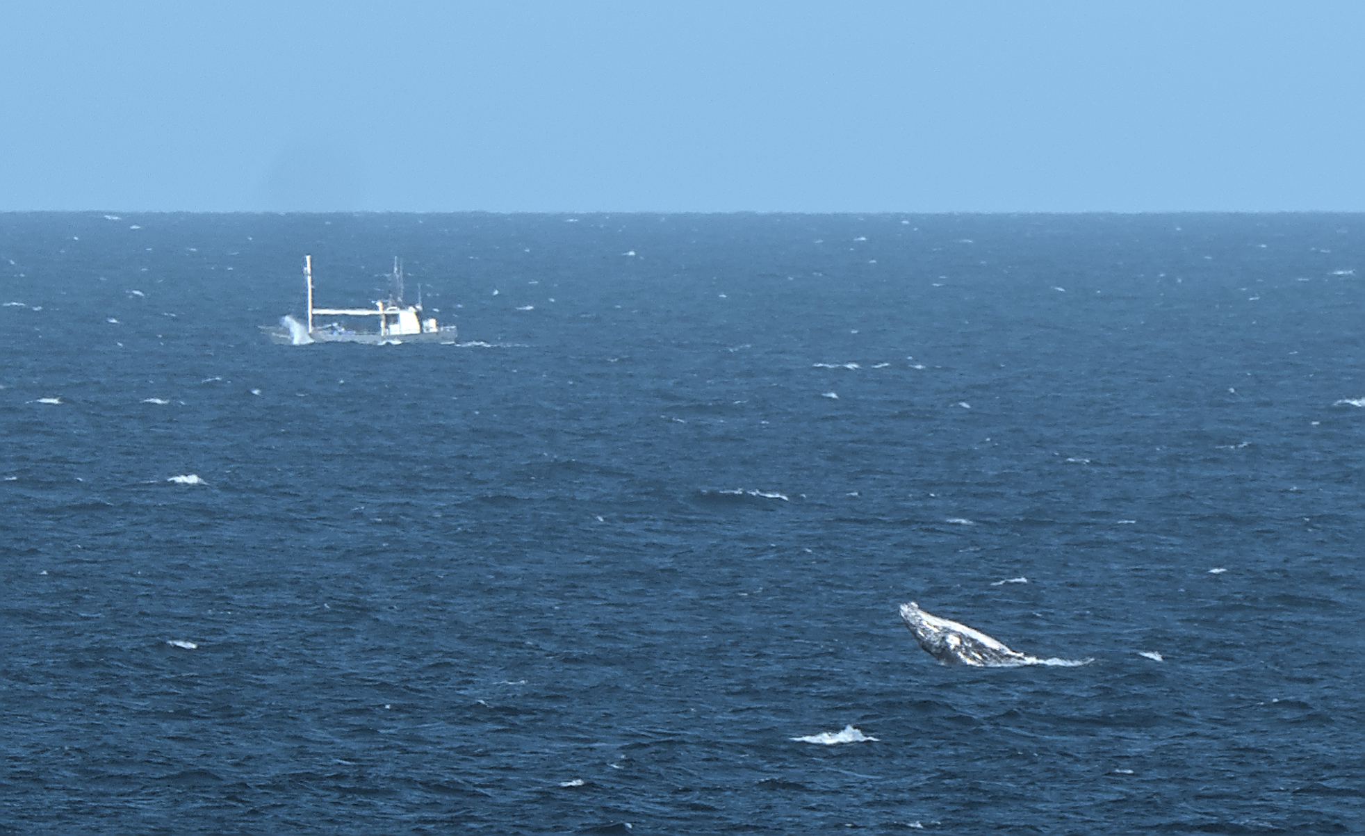 Und dann taucht plötzlich am 'Point Perry' ein Buckelwal auf, der macht eine Schraube und einen Rückenplatscher. Wir haben endlich unseren ersten Wal gesehen, werden wir nie vergessen.