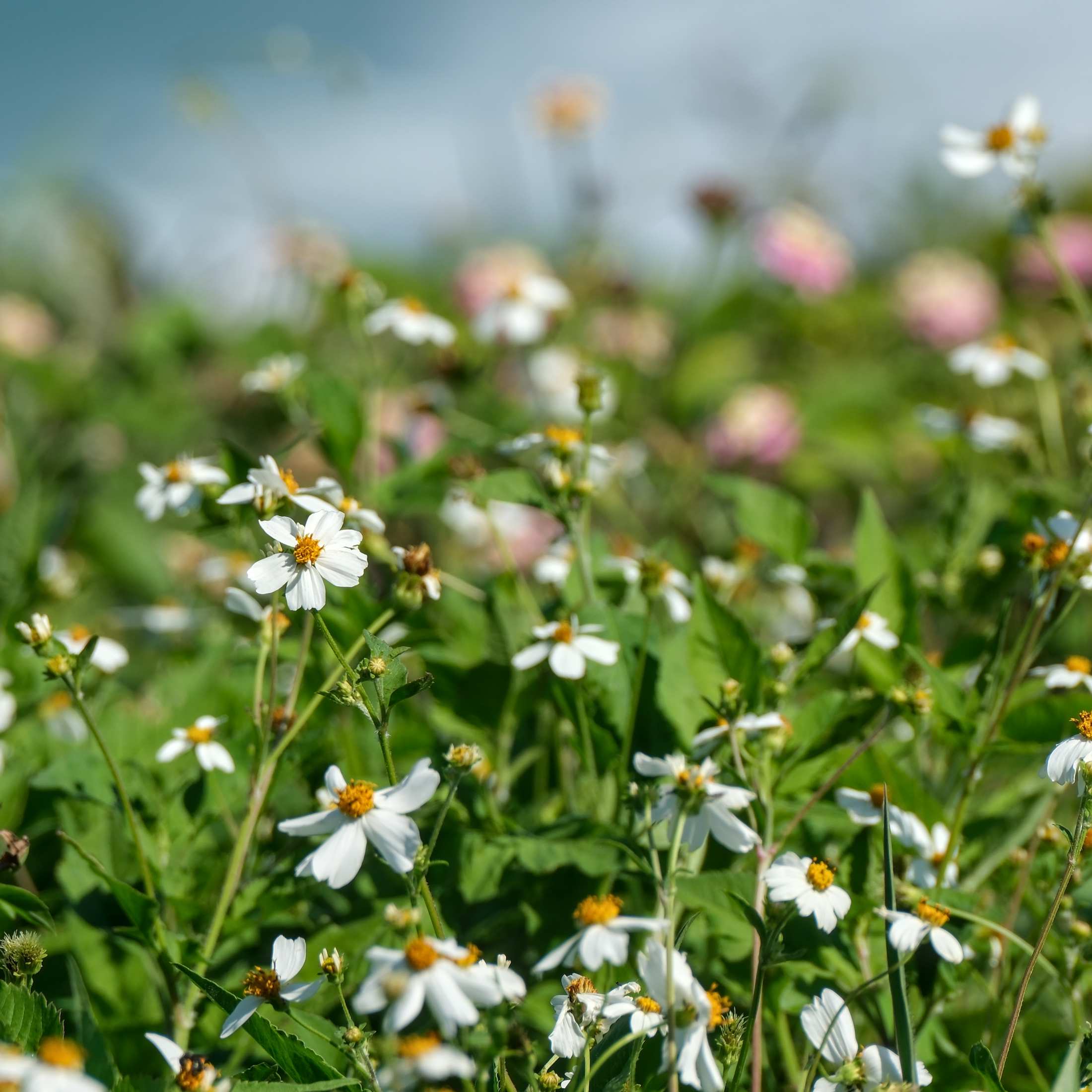 Bidens alba (Zweizahngewächs) und Prunkwinde
