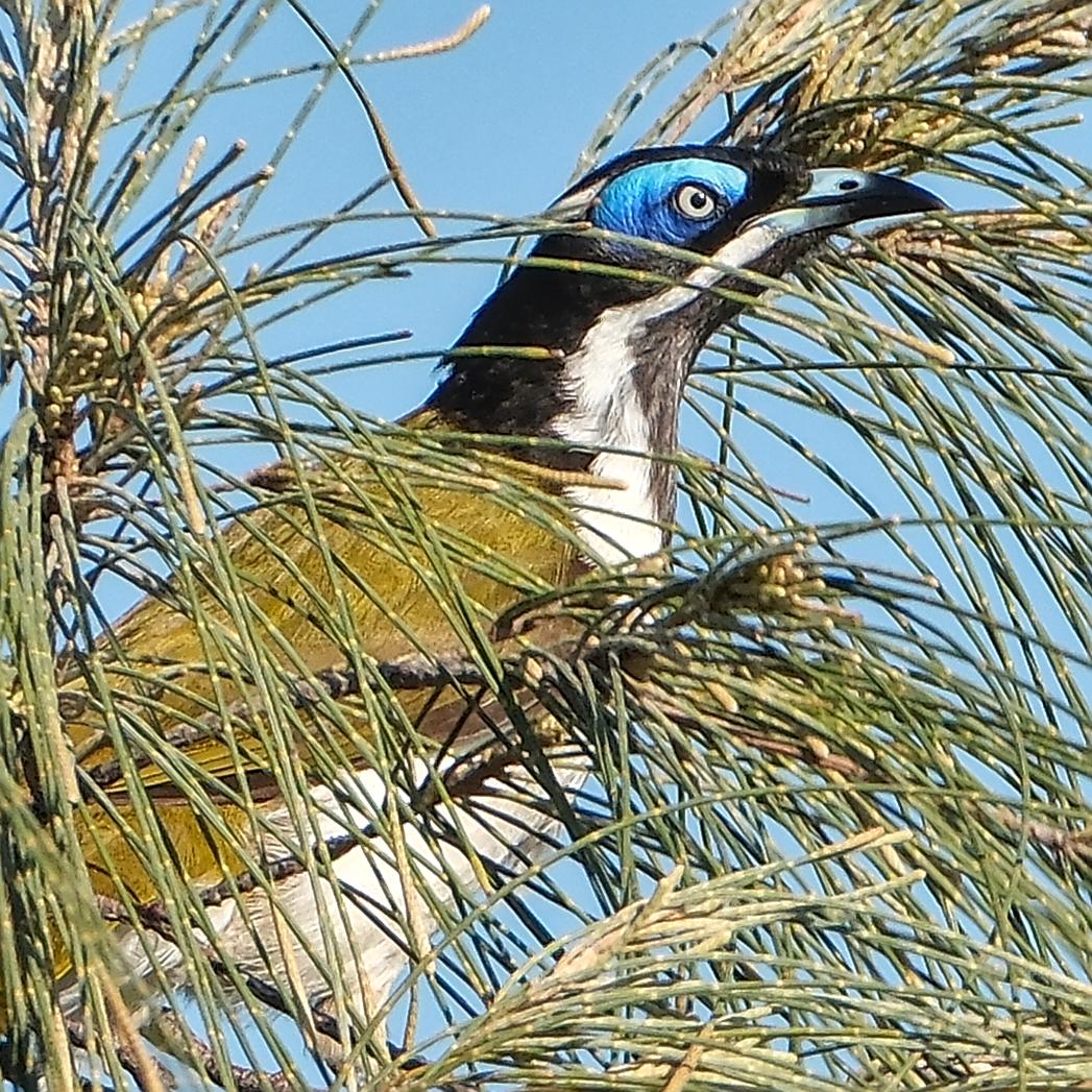 Übelgelaunter Blauohrhonigfresser und Gesellschaftskrähe(?).
