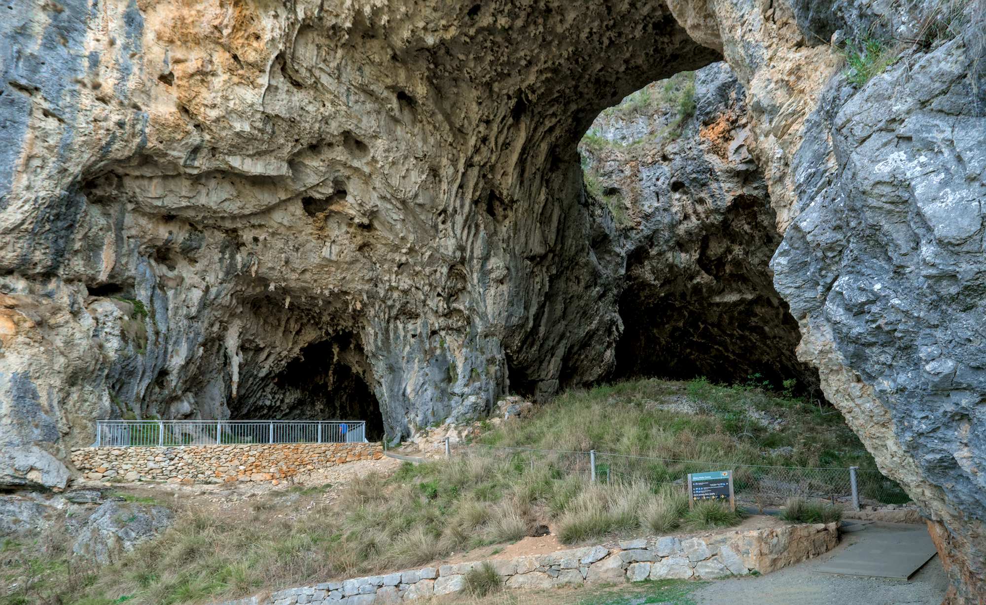 Yarrangobilly Caves (Höhlen): Hier die gewaltigen Eingänge links zur nördlichen und rechts zur südlichen 'Glory Cave'. Die rechte, mit großer Halle und Einsturzloch in der Decke, ist die einzige in diesem Gebiet, die man ohne Führung besuchen darf.