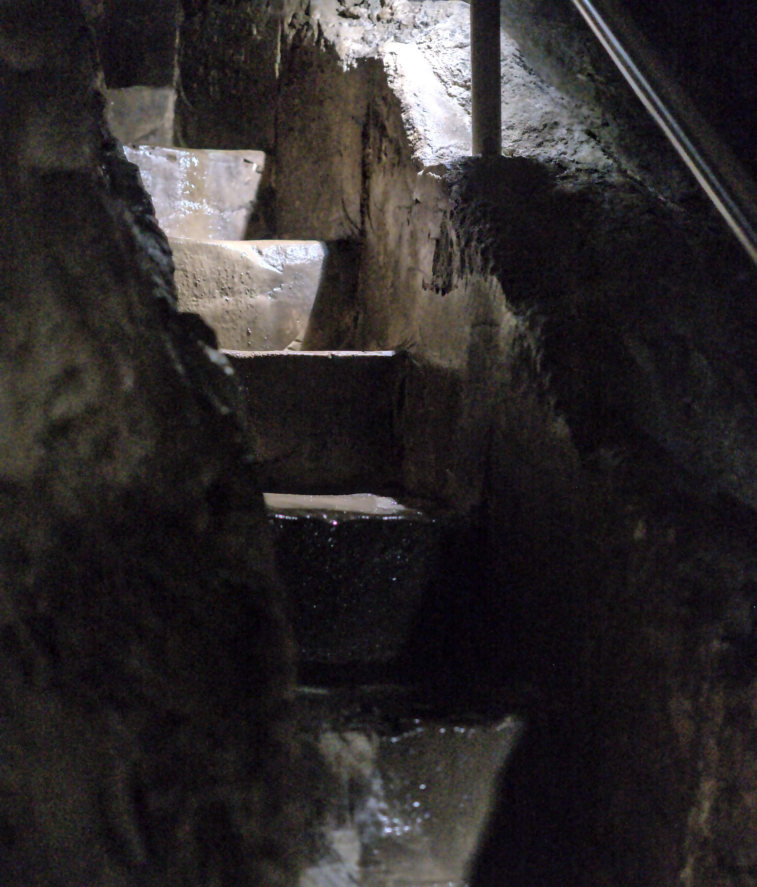 Eng, deswegen "Einbahnstraße", aber sehr sicher geht es durch die Höhle immer leicht bergauf. Die Beleuchtung wird durch Bewegungsmelder eingeschaltet. Wenn man zu langsam ist, z. B. beim Fotografieren, geht es aus und man steht fast im Dunkeln.