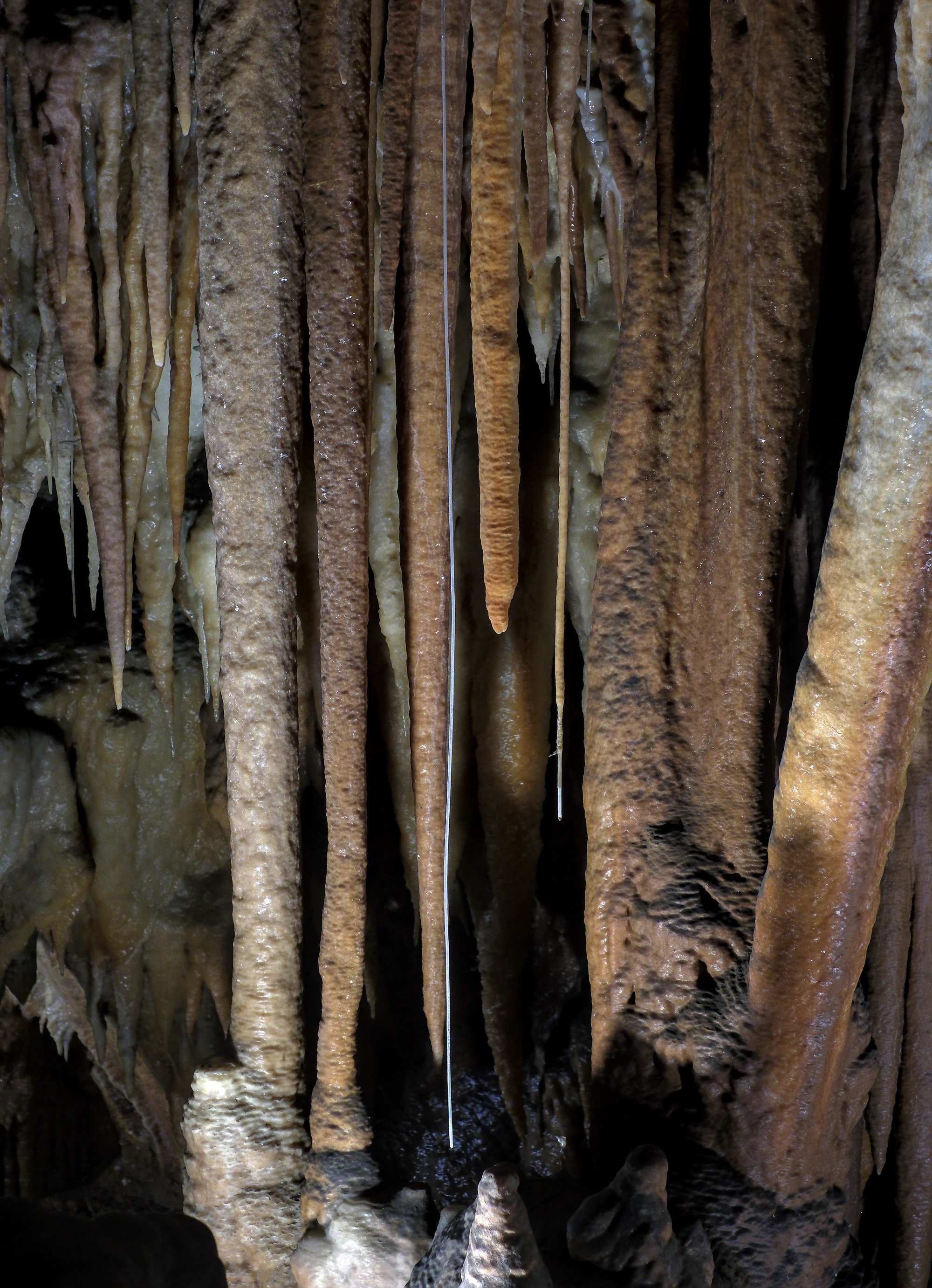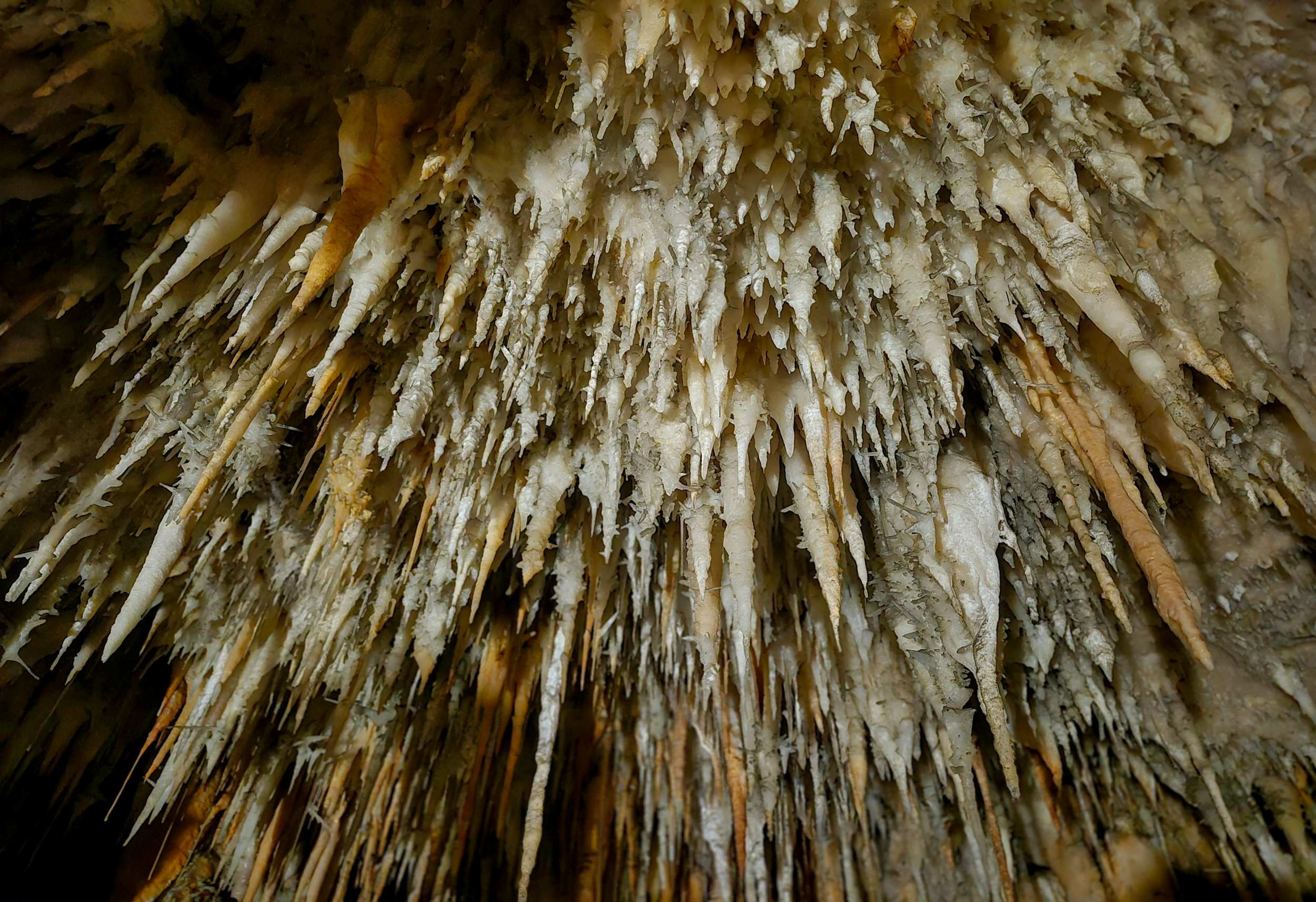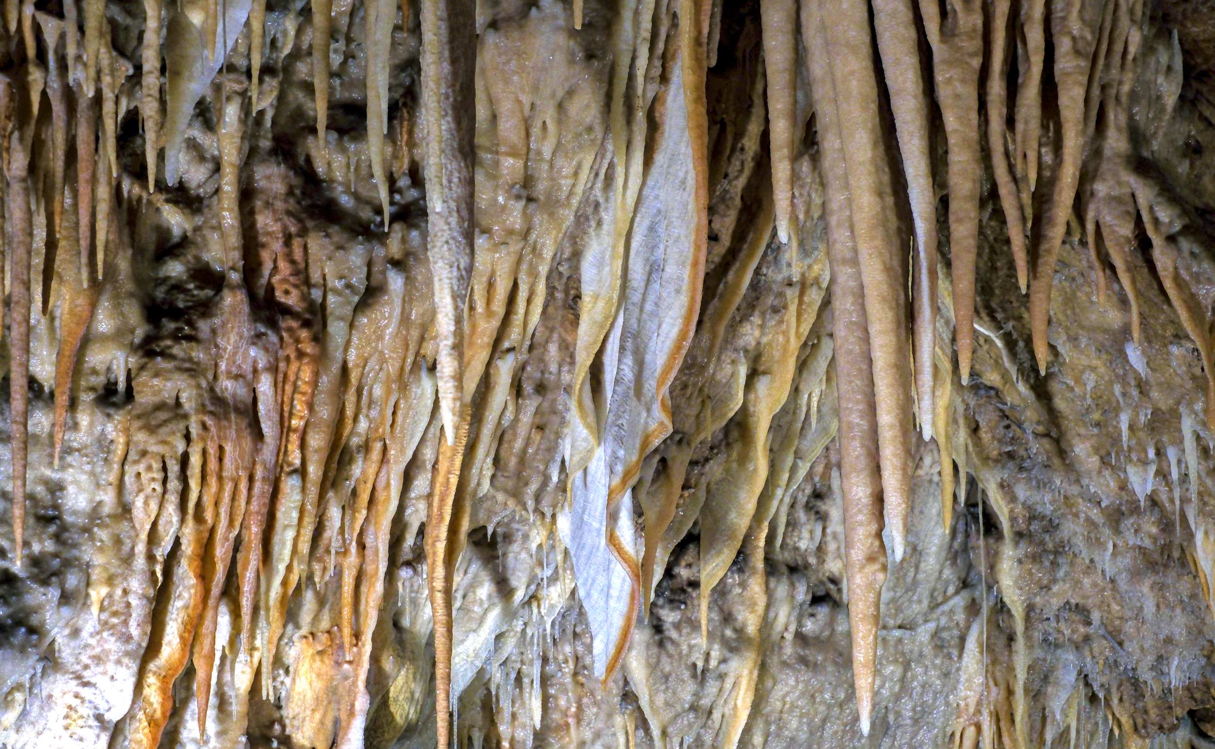 Das sind keine Kabelreste, sondern filigrane Stalaktiten. Im nächsten Foto hat die Natur ein "Geschirrhandtuch" an die Decke gezaubert.