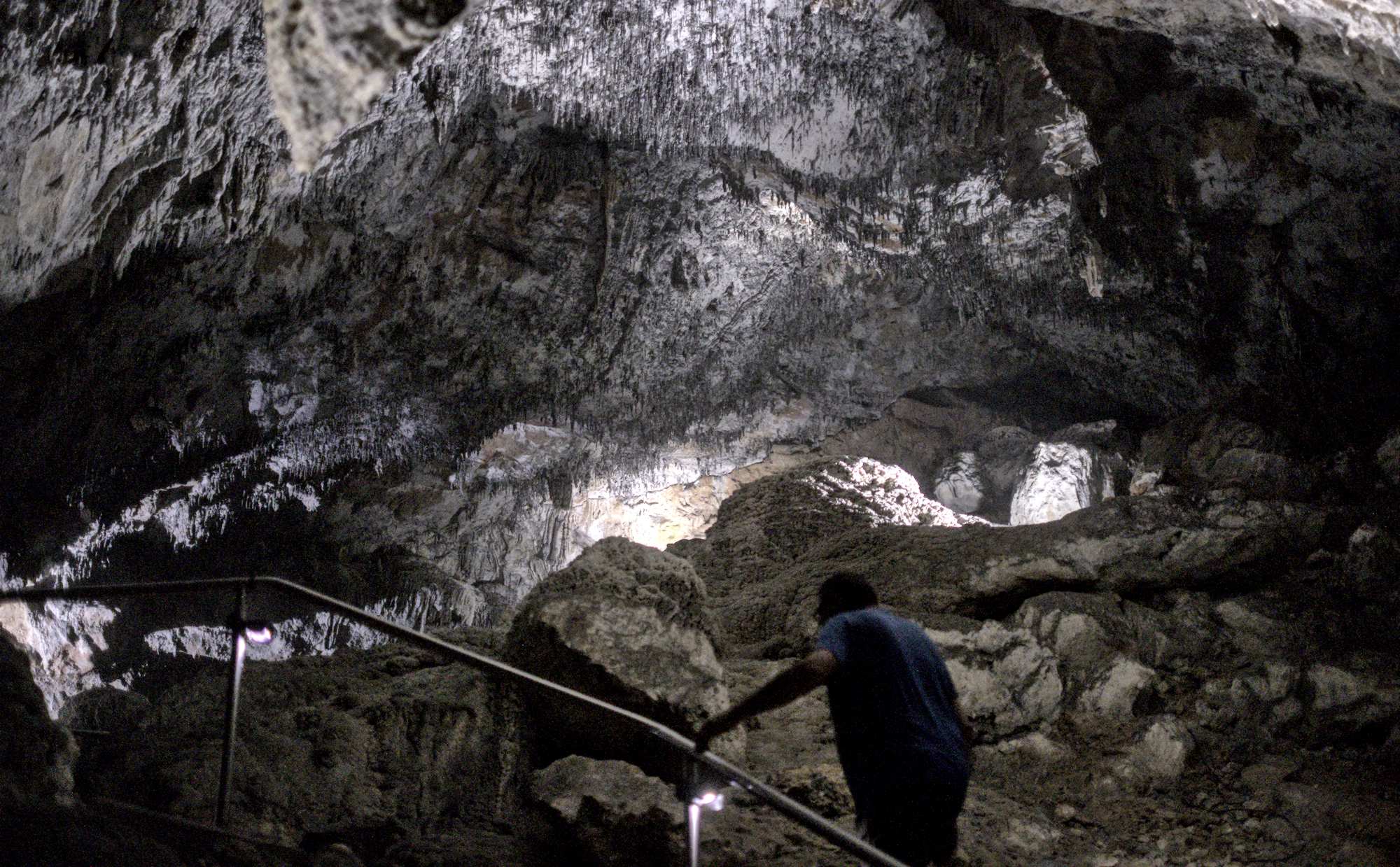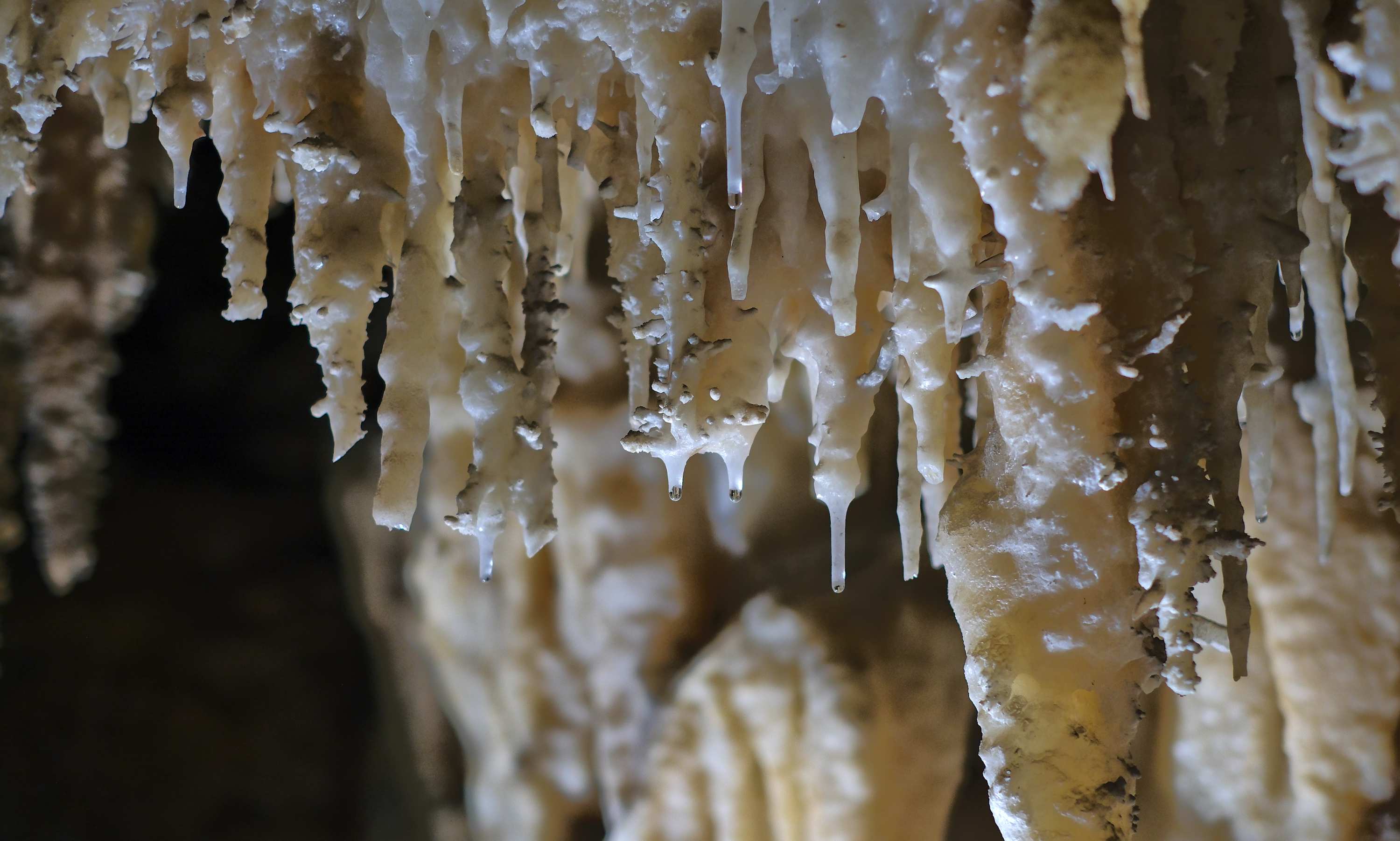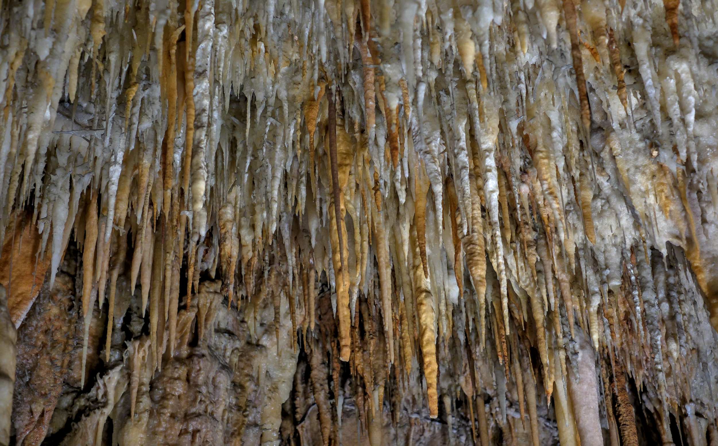 Das sind keine Kabelreste, sondern filigrane Stalaktiten. Im nächsten Foto hat die Natur ein "Geschirrhandtuch" an die Decke gezaubert.
