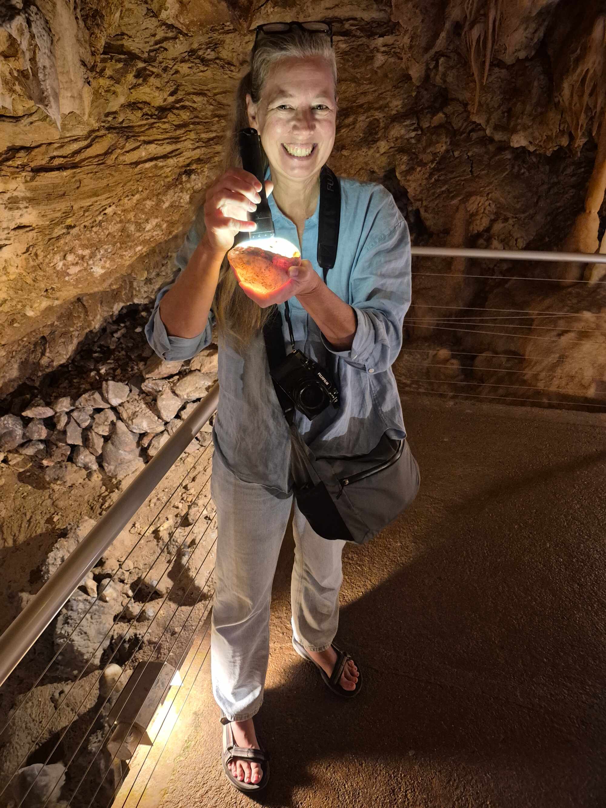 Bei der 'Jillabenan Cave' hatten wir Glück, dass gerade eine Führung begann und wir uns anschließen konnten. Sie ist um die 2 Millionen Jahre alt, nur 70 m lang, aber ein absolutes Juwel. Wir haben ja schon viele Tropfsteinhöhlen besucht, aber die Vielfalt der Formen und Farben in dieser übertrifft alles bisher Gesehene.