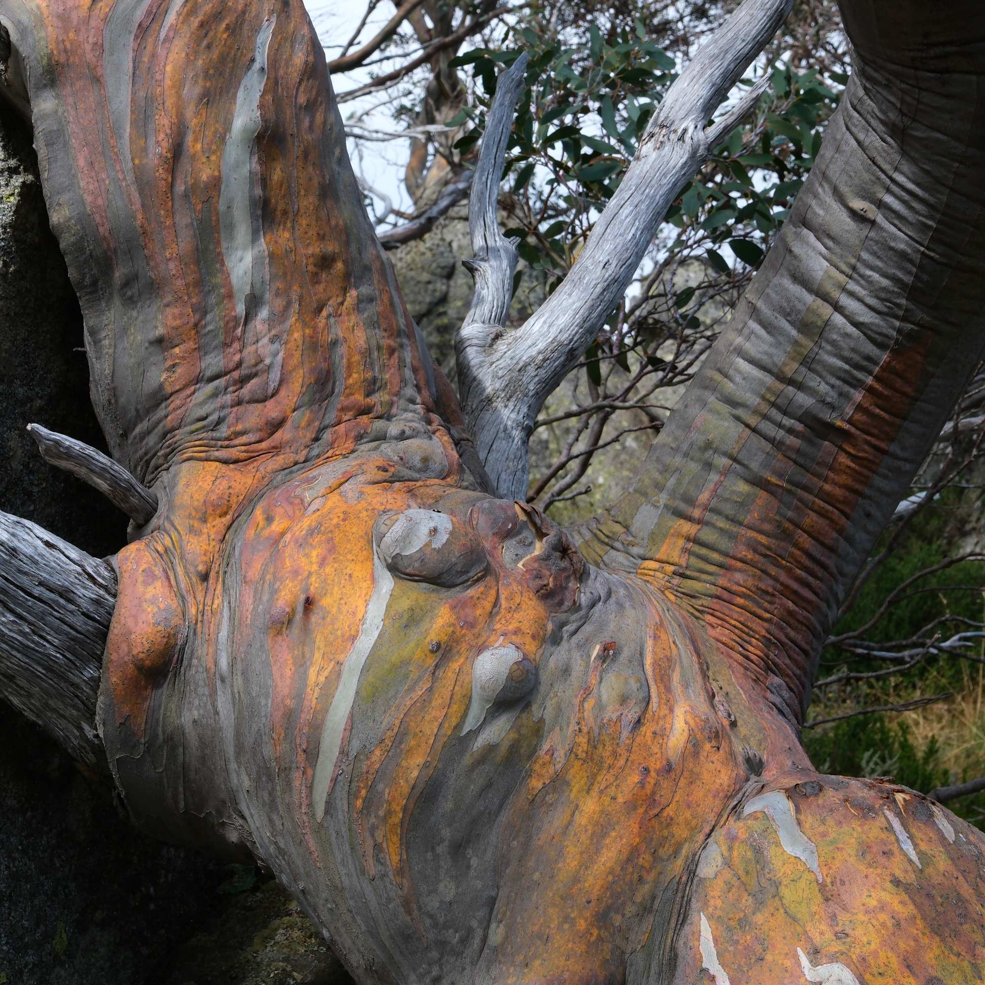 Typischer und wunderschöner Baum in den 'Snowy Mountains': Der 'Snow Gum' (Schnee-Eukalyptus). Er verträgt Temperaturen bis zu -20 °C.
