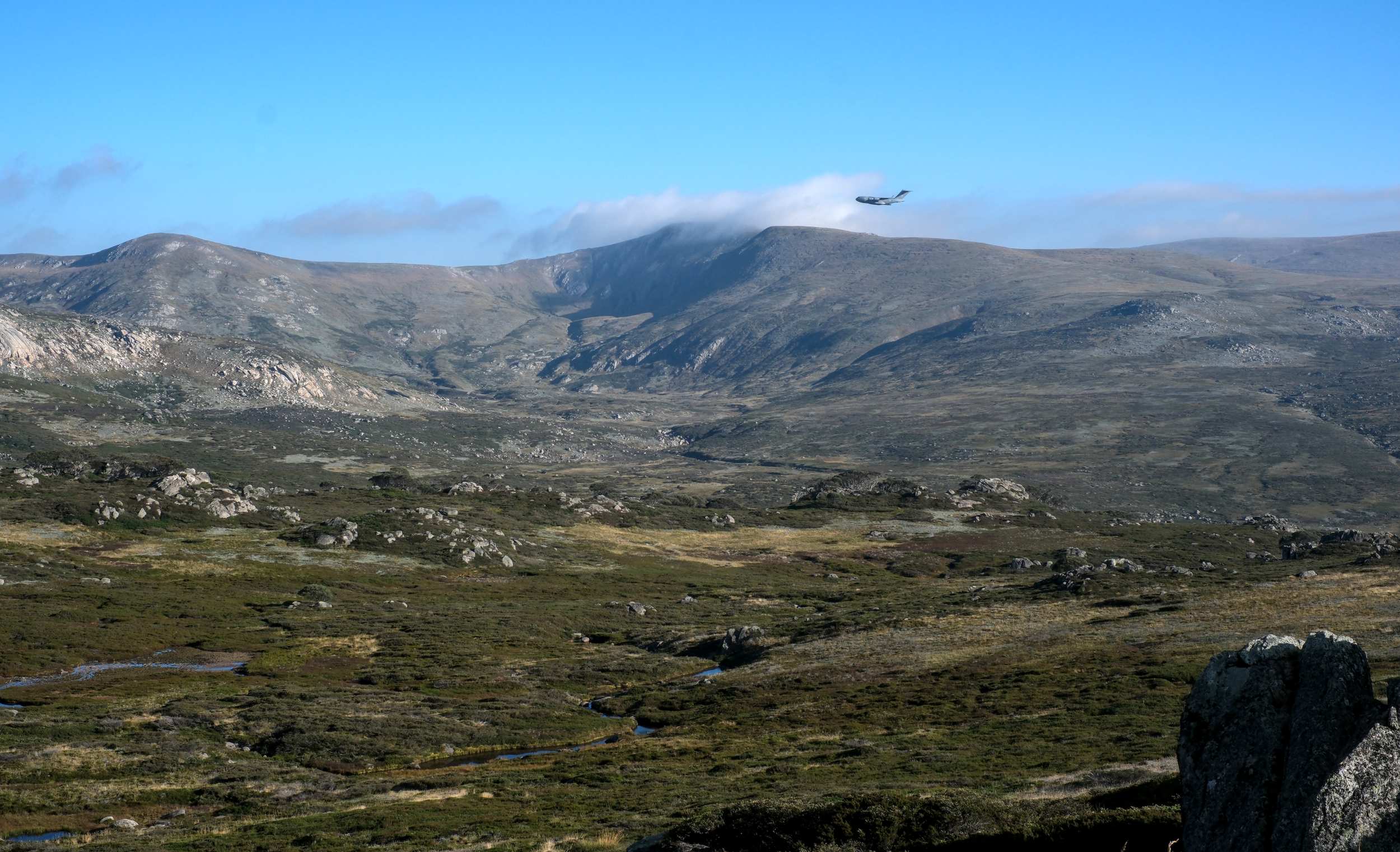 Auf dem Weg zum 'Mount Kosciuszko' überholt uns ein tieffliegender Militärtransporter der Royal Australian Airforce (RAAF), wahrscheinlich eine Boeing C-17A Globemaster III.