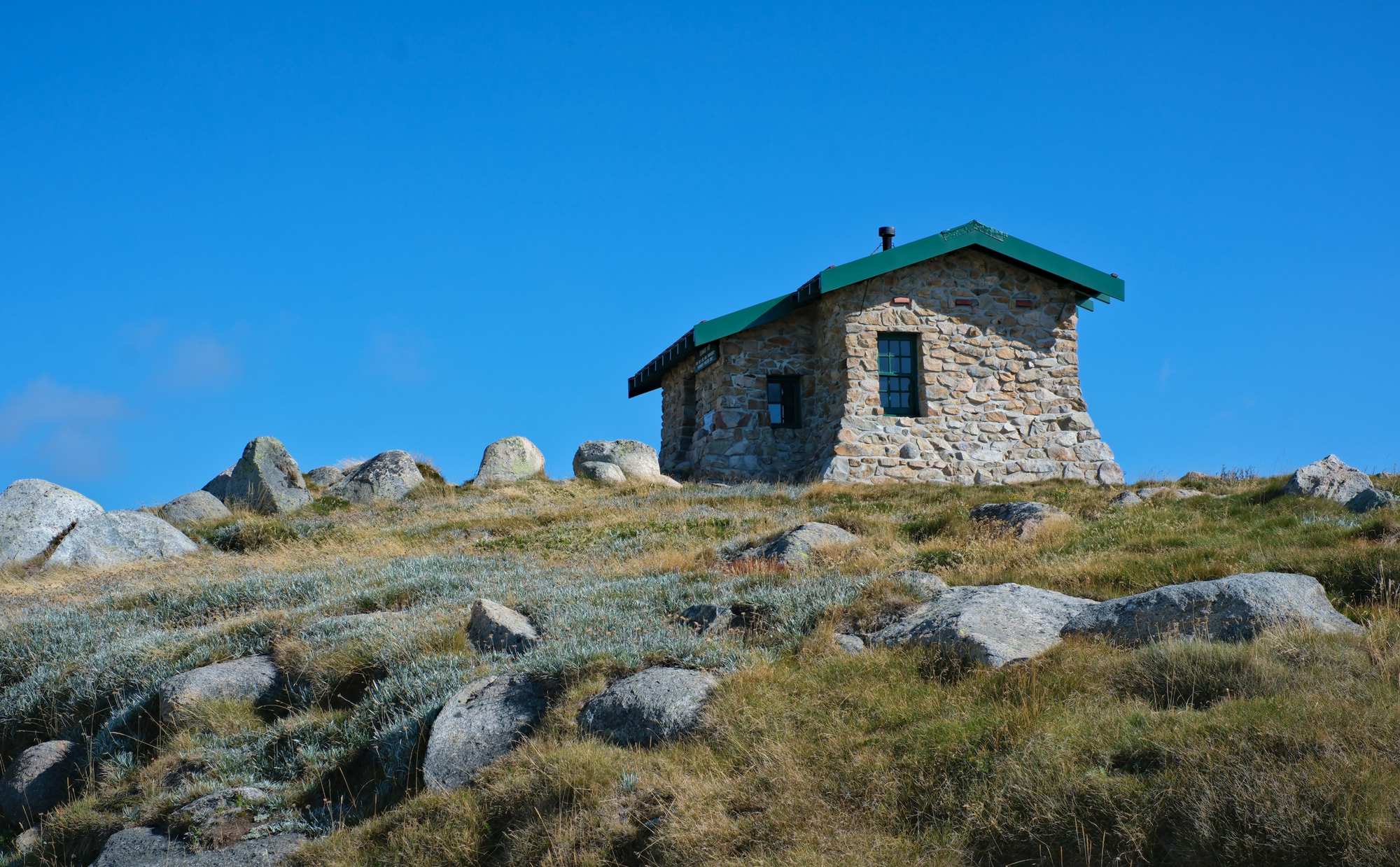Die Notunterkunft 'Seaman's Hut', gespendet von den Eltern der Skiwanderer W. Laurie Seaman und dessen Freund Evan Hayes, die dort 1928 bei einem Unwetter ums Leben kamen.