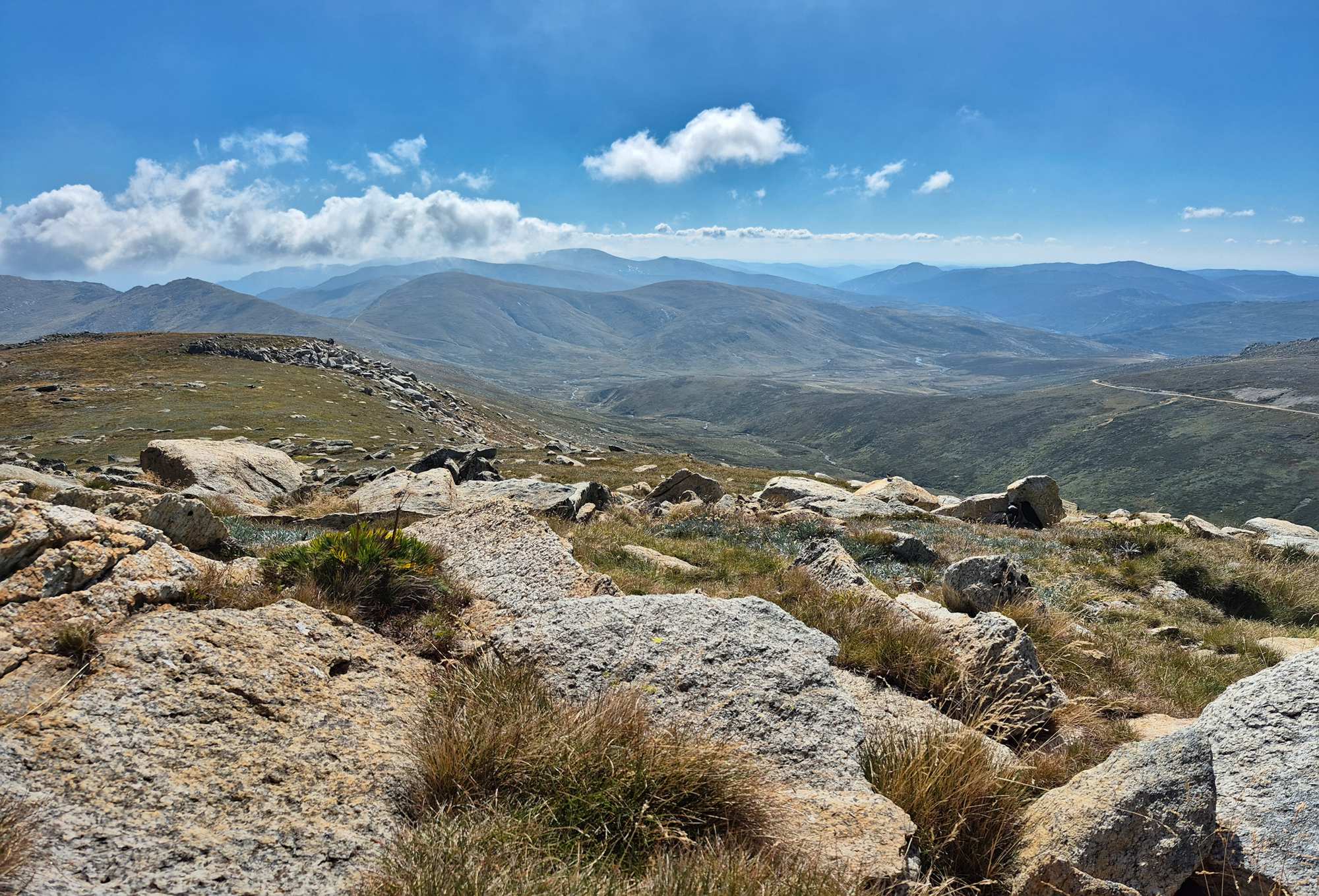 Heute haben wir zum zweitenmal Australiens Höchsten, den 'Mount Kosciuszko' (2.228 m), bestiegen. Im Gegensatz zu vor 13 Jahren, als wir von Thredbo hinaufgelaufen sind, ohne Seilbahnbenutzung, sind wir diesmal vom 'Charlotte Pass' aus gestartet. Nach knapp 3 h waren wir bei bestem Wetter oben und weil es so schön war, sind wir noch die Runde über den Carruthers Peak (2.145 m) gegangen. Insgesamt gut 22 Kilometer, über 800 Höhenmeter, bei 7,5 Stunden Gehzeit.