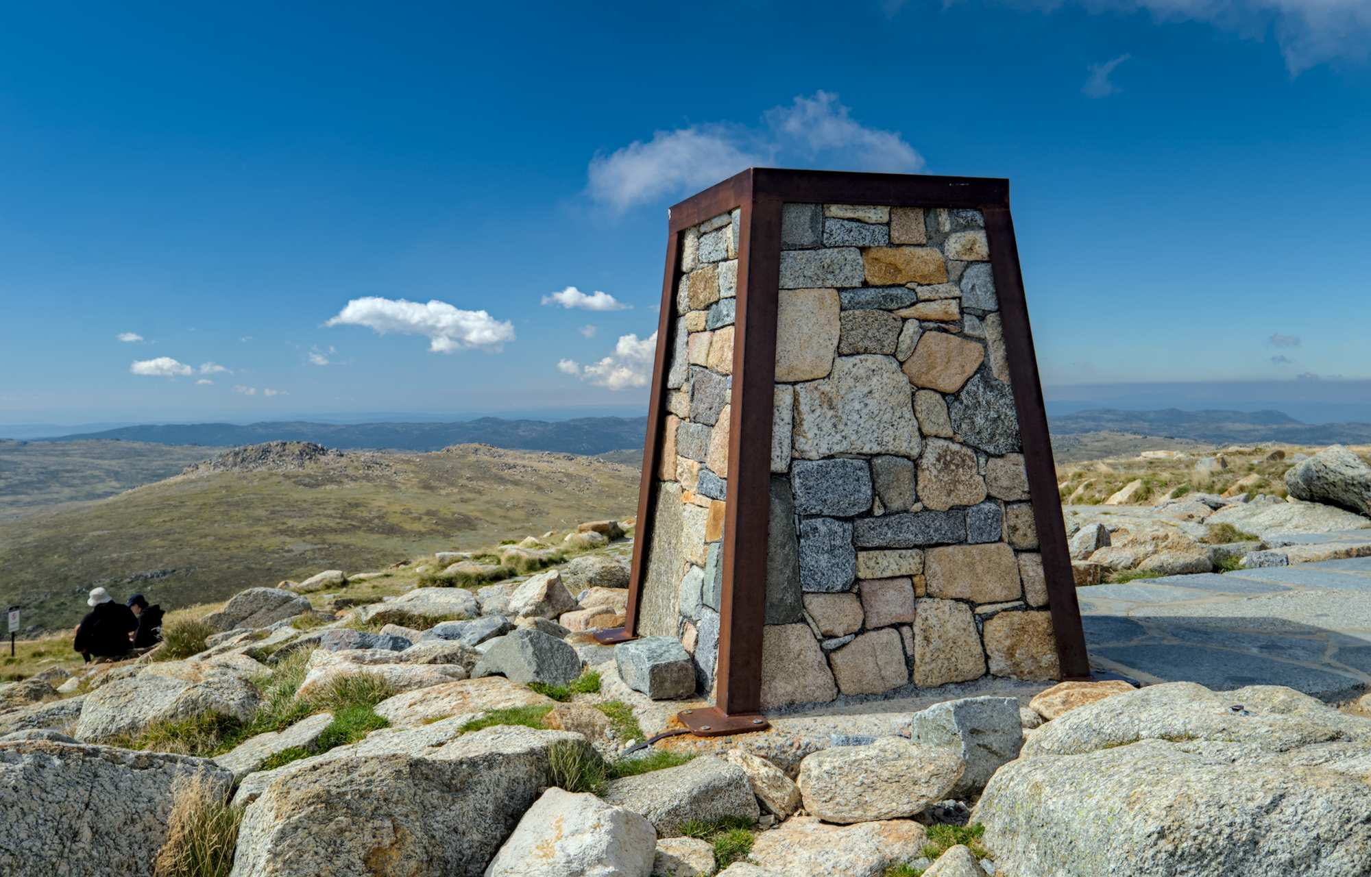 Auf dem Gipfel des 'Mount Kosciuszko'.