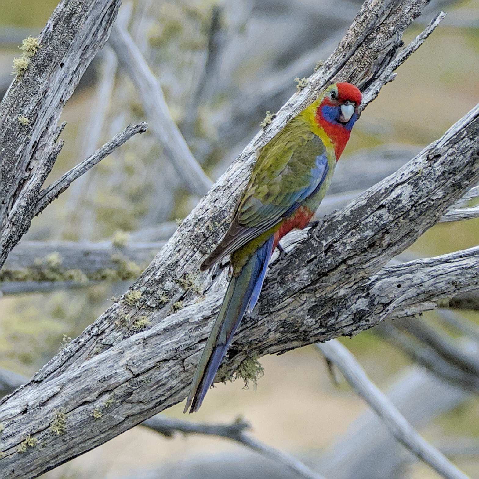 Pennantsittich und Flötenkrähenstar, der seinem Namen alle Ehre macht.