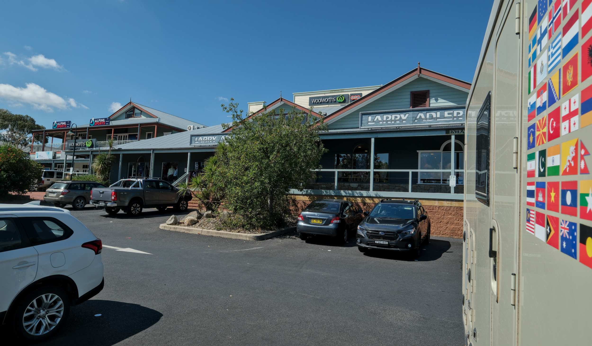 Die Flaggen und Karten erregen Interesse. Diesmal in Jindabyne lernen wir deswegen Diana und Brett kennen.
