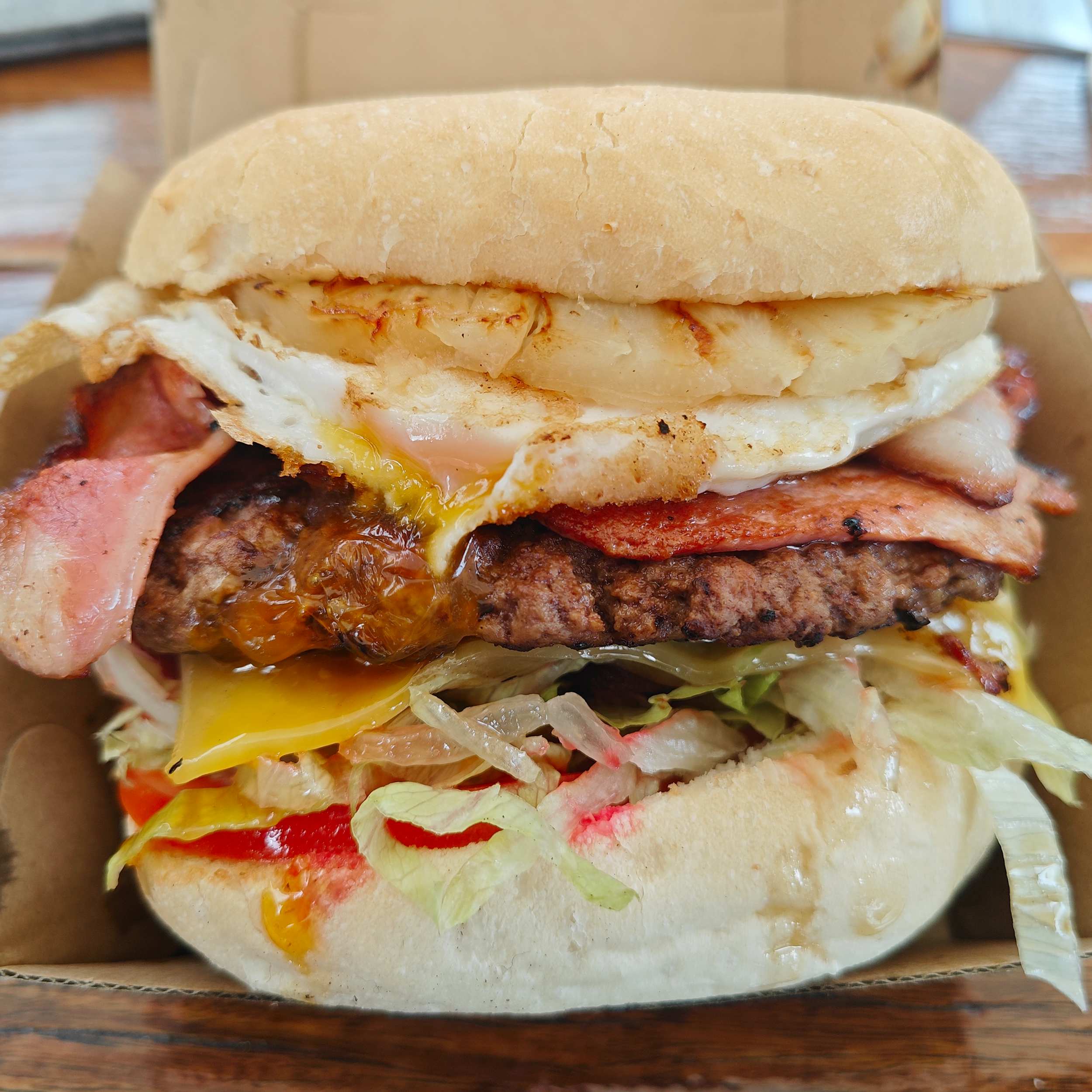 Laut Brett die besten Burger Australiens (von 'Mountain Munchies' in Jindabyne) und wirklich: Zumindest der rechte, meiner, war fabelhaft.