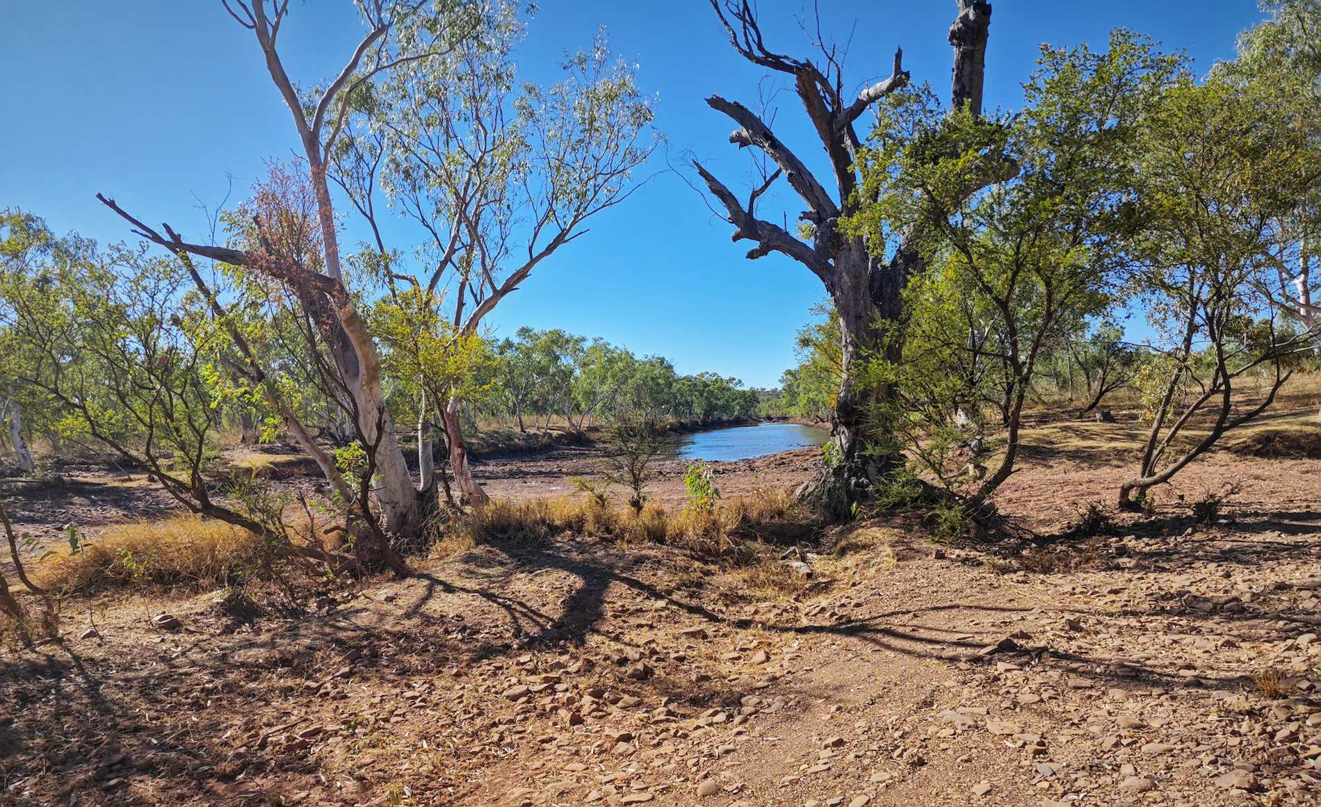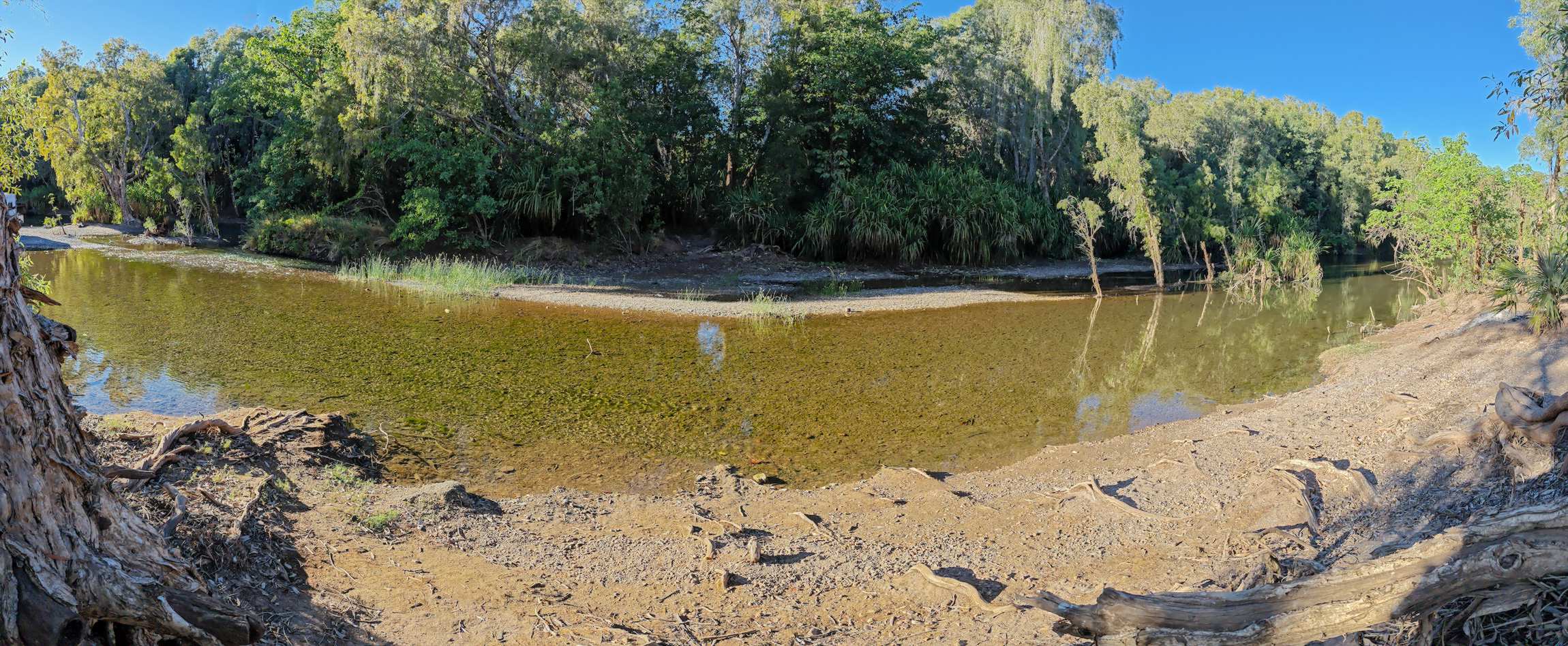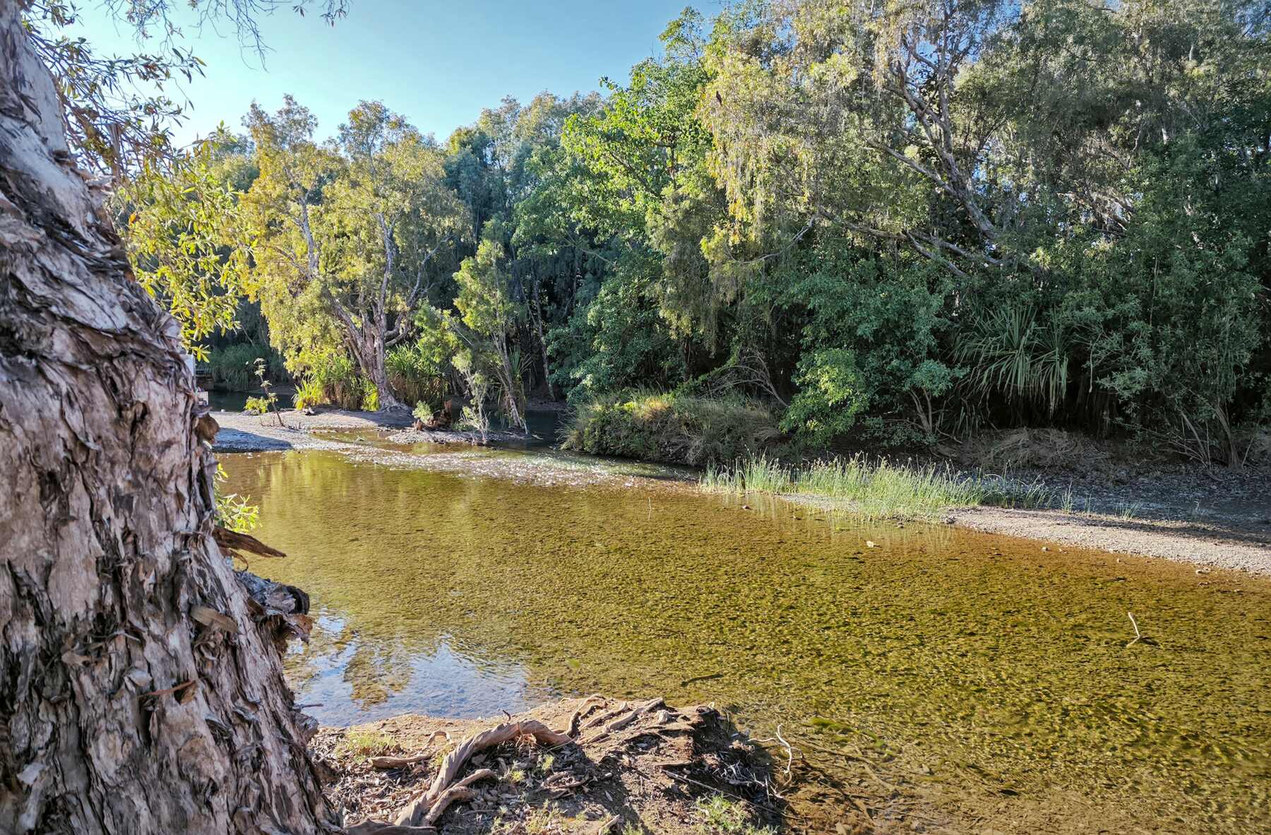 Einer der vielen Creeks, die auch jetzt, am Ende der Trockenzeit, noch Wasserstellen haben.