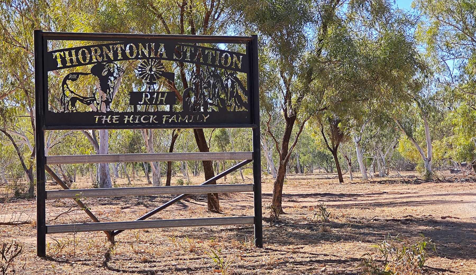 Das "Schild" einer riesigen Schaffarm hier im Outback.