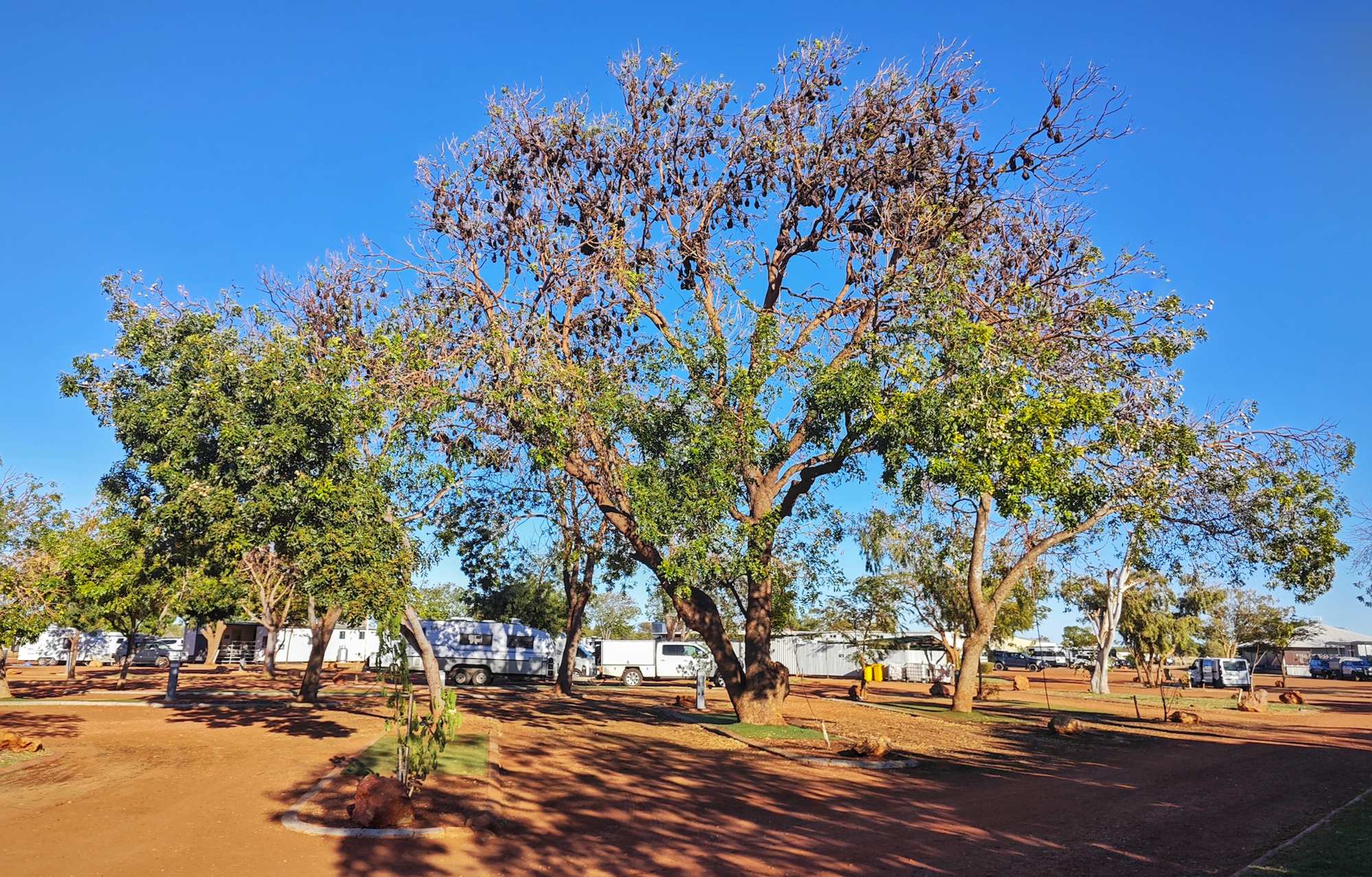 Auf dem Campingplatz des 'Barkly Homestead Roadhouse' fühlen sich auch Flughunde wohl.