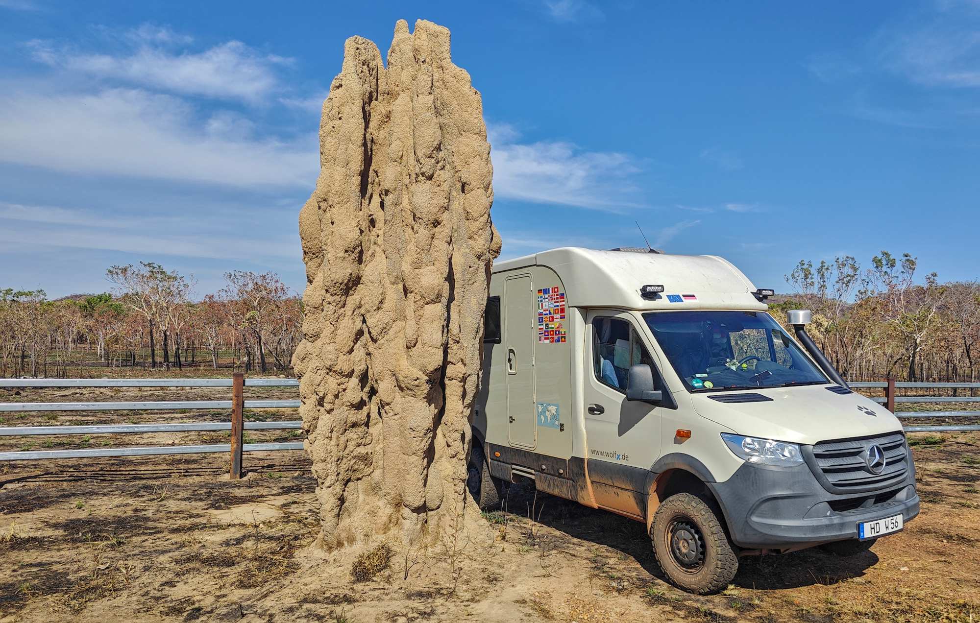 Gut fünf Meter hoch dieser Termitenbau. Daneben wirkt selbst Bertha klein.