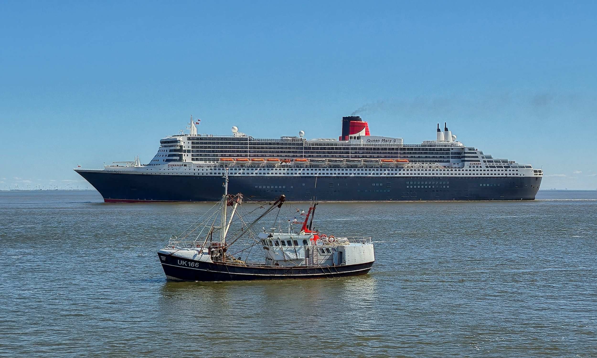 Viel Verkehr auf dem Strom und als Höhepunkt kommt auch noch die 'Queen Mary 2' vorbei.