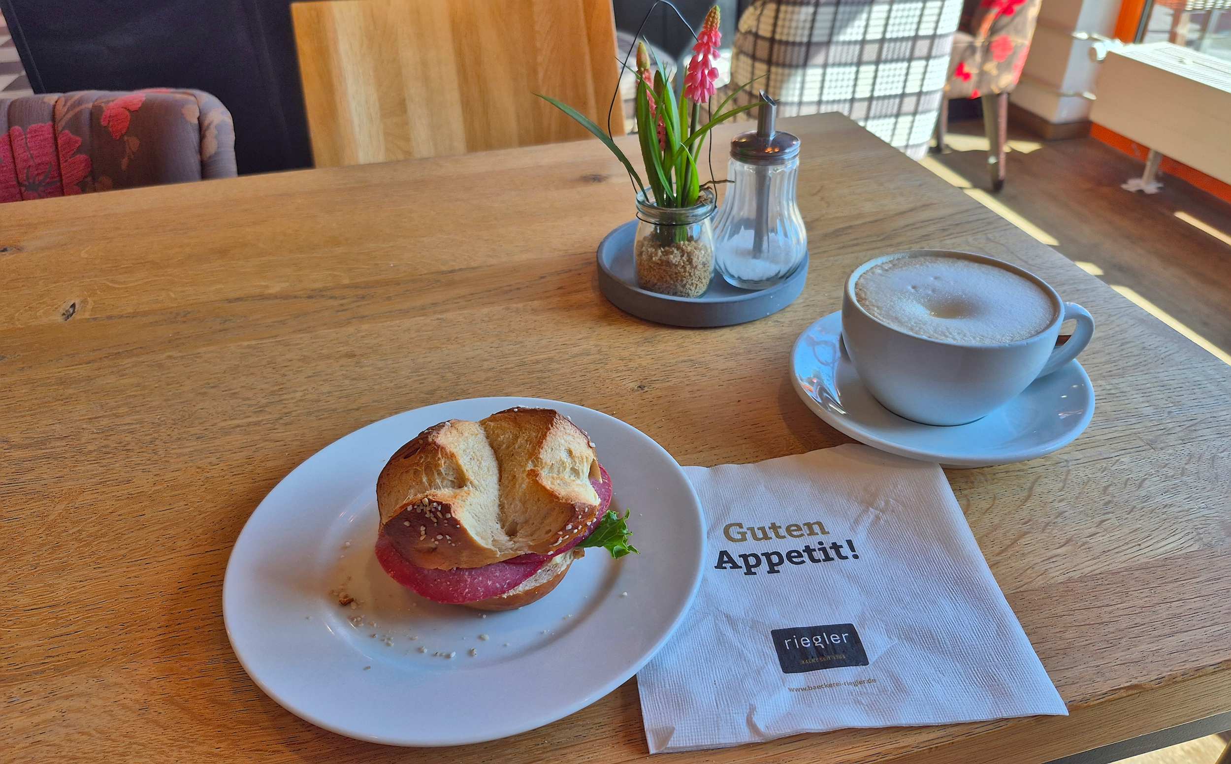 Wieder zuhause in Heidelberg fällt das Frühstück im Bäckereikaffee bescheidener aus.