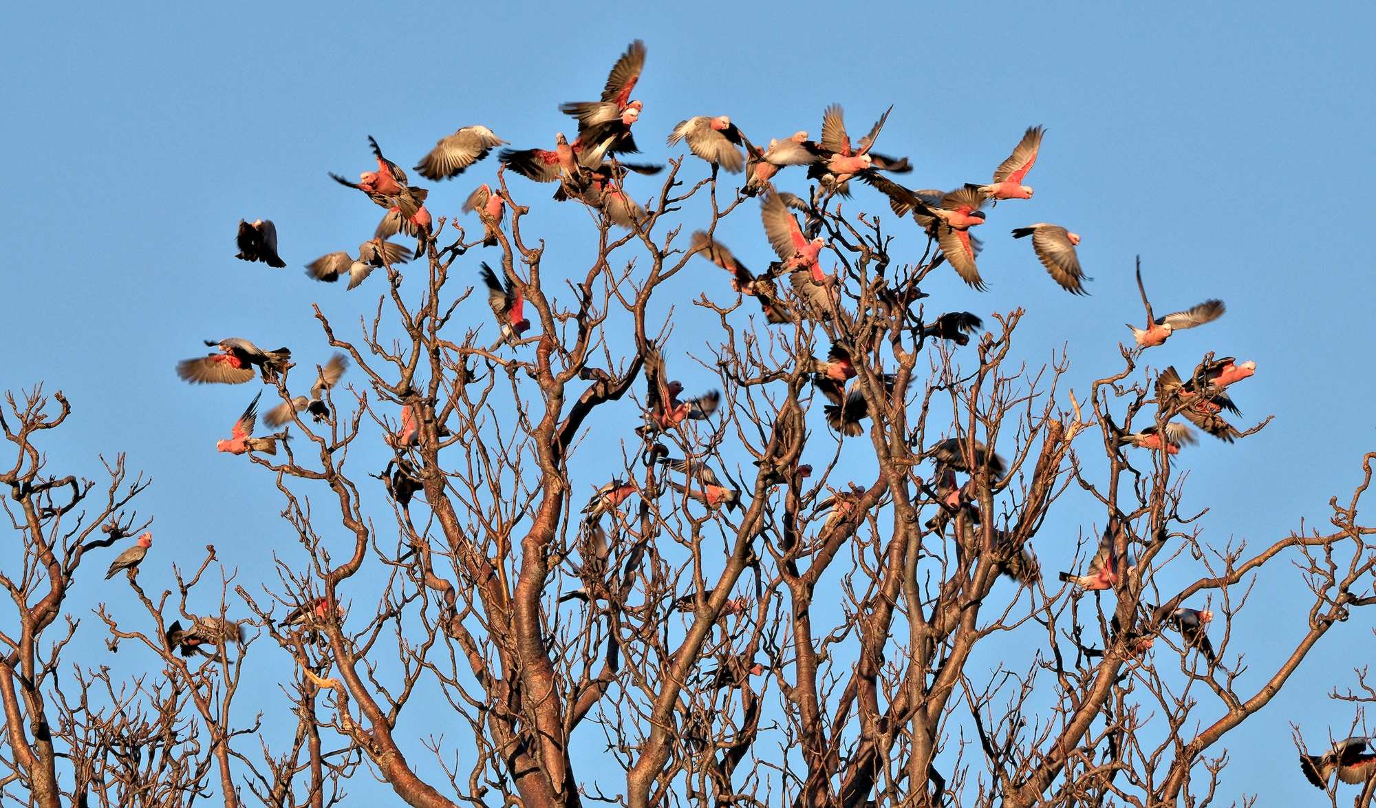 Die Rosa Kakadus sind wie ihre Artgenossen sehr gesellige und kreischende Vögel.