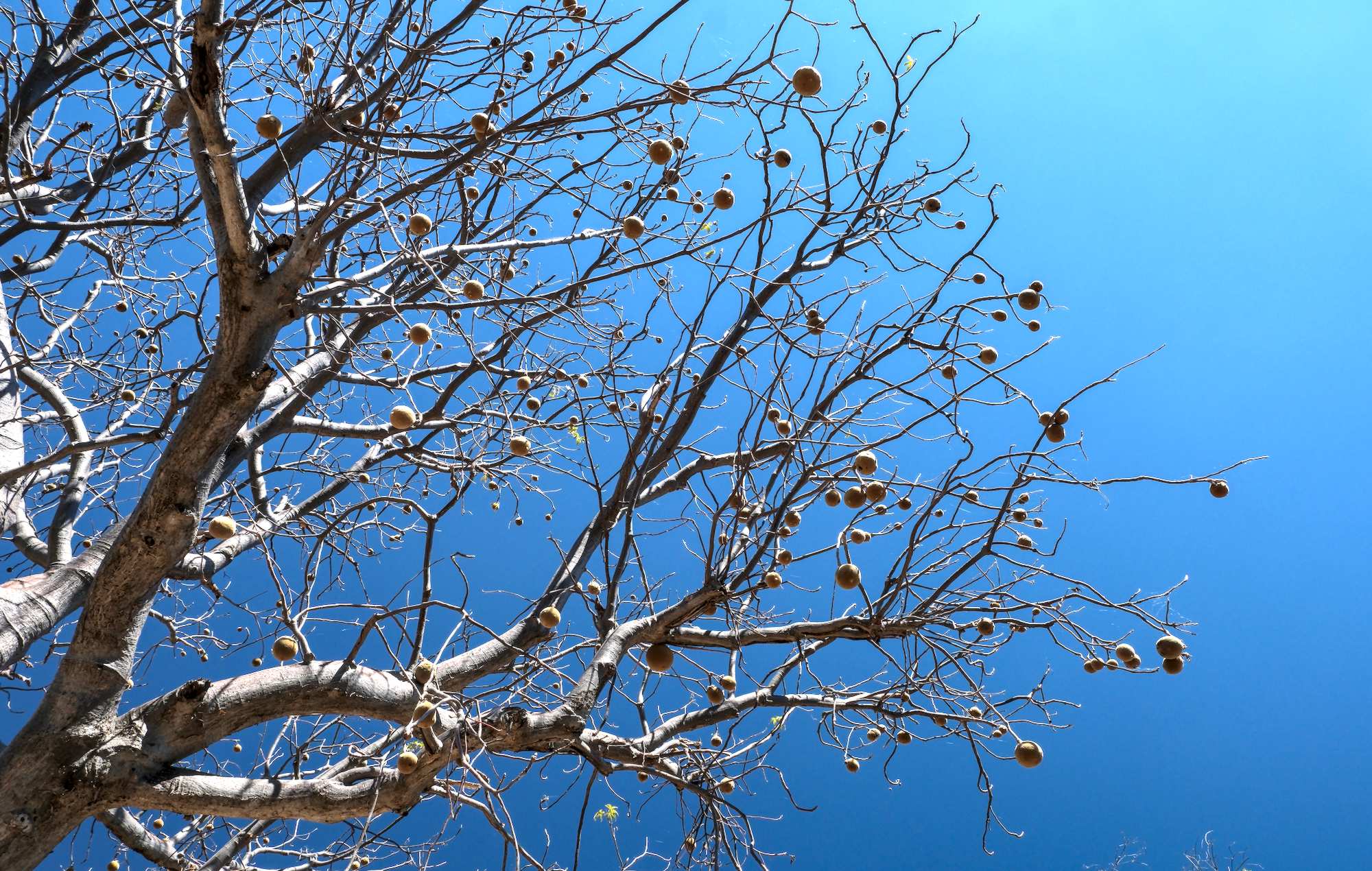 Die Früchte des Boabs. Man könnte glauben, dass er schon für Weihnachten Kugeln trägt.