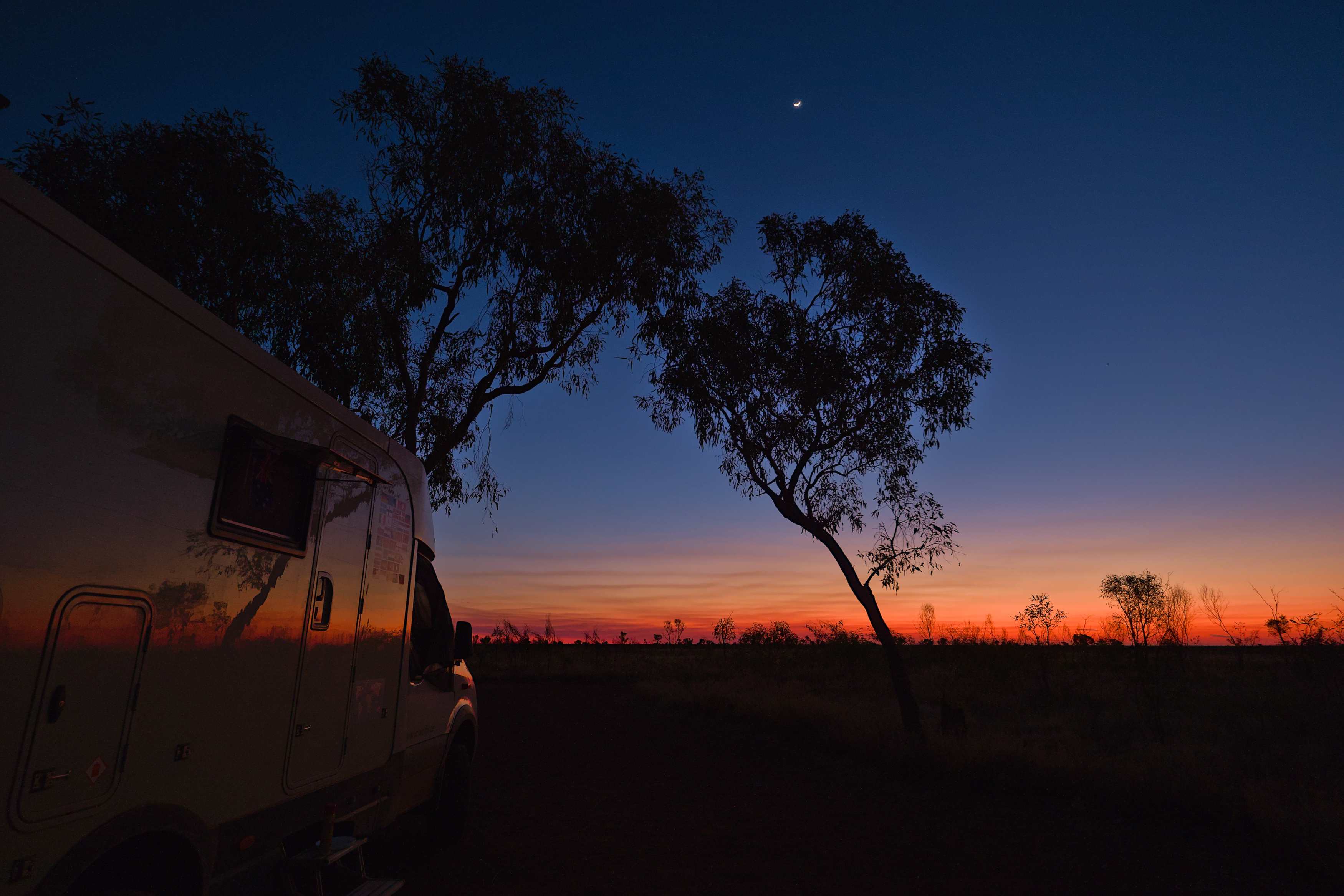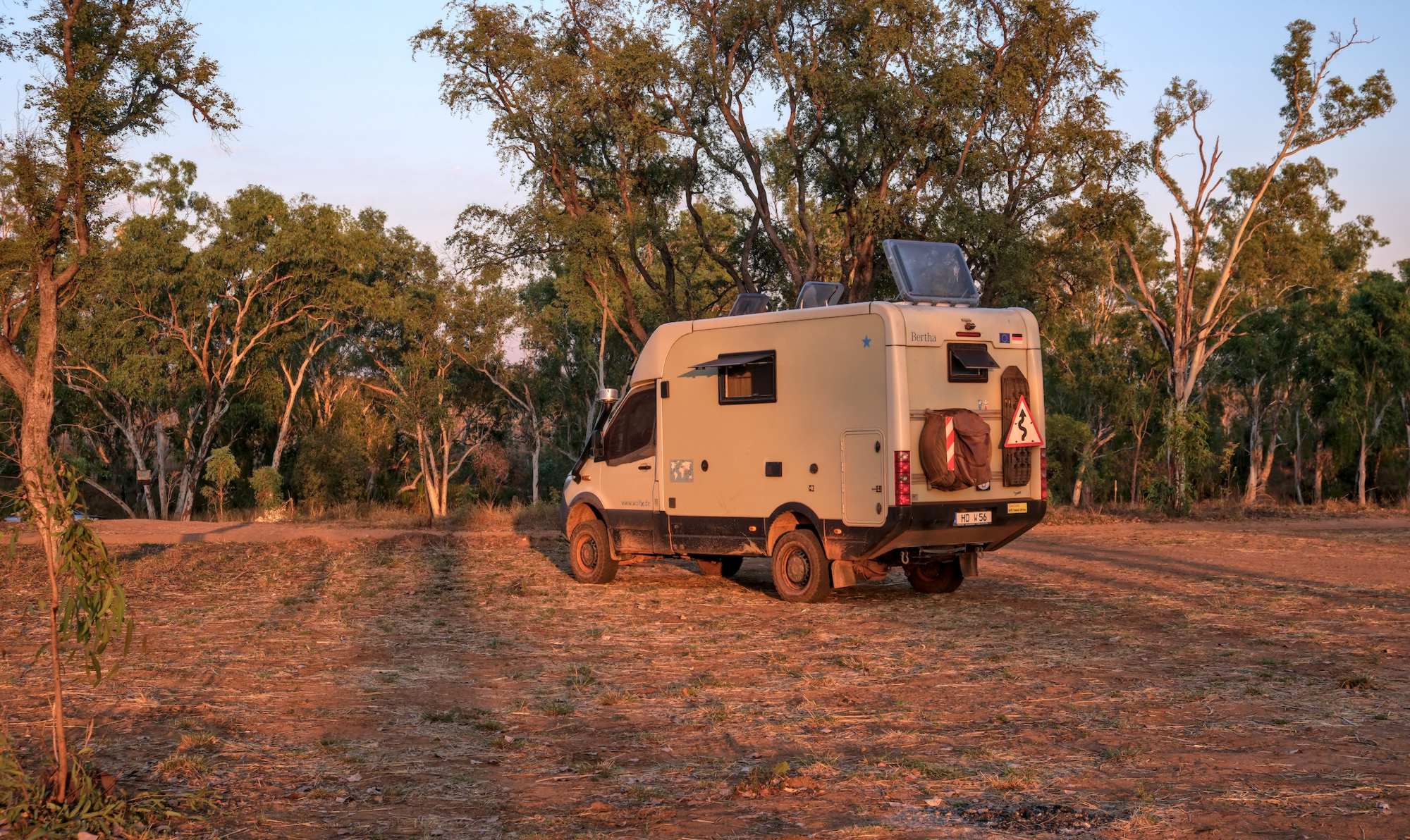 Jetzt stehen wir frei am 'Hann River Crossing'. Die Überquerungen sind jetzt, am Ende der Trockenzeit, kein Problem, weil die Flüsse wenig Wasser führen. Morgen geht es weiter auf der Gibb, die aber von hier aus immer besser werden soll.