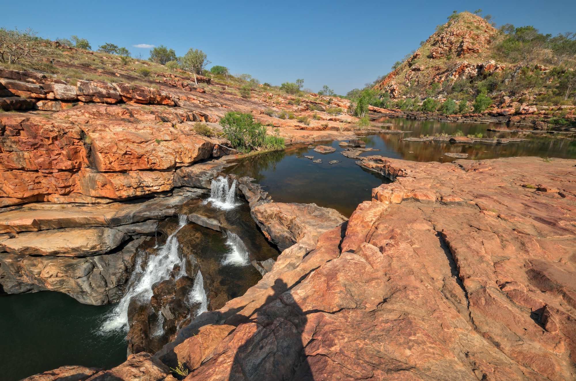 Weiter auf der jetzt besser zu fahrenden 'Gibb River Road'. Besuch der 'Galvans Gorge' mit einem kleinen Wasserfall und Badepool, herrlich umragt von Felswänden und Pflanzen. Wir erklären sie zur schönsten bisher gesehenen.