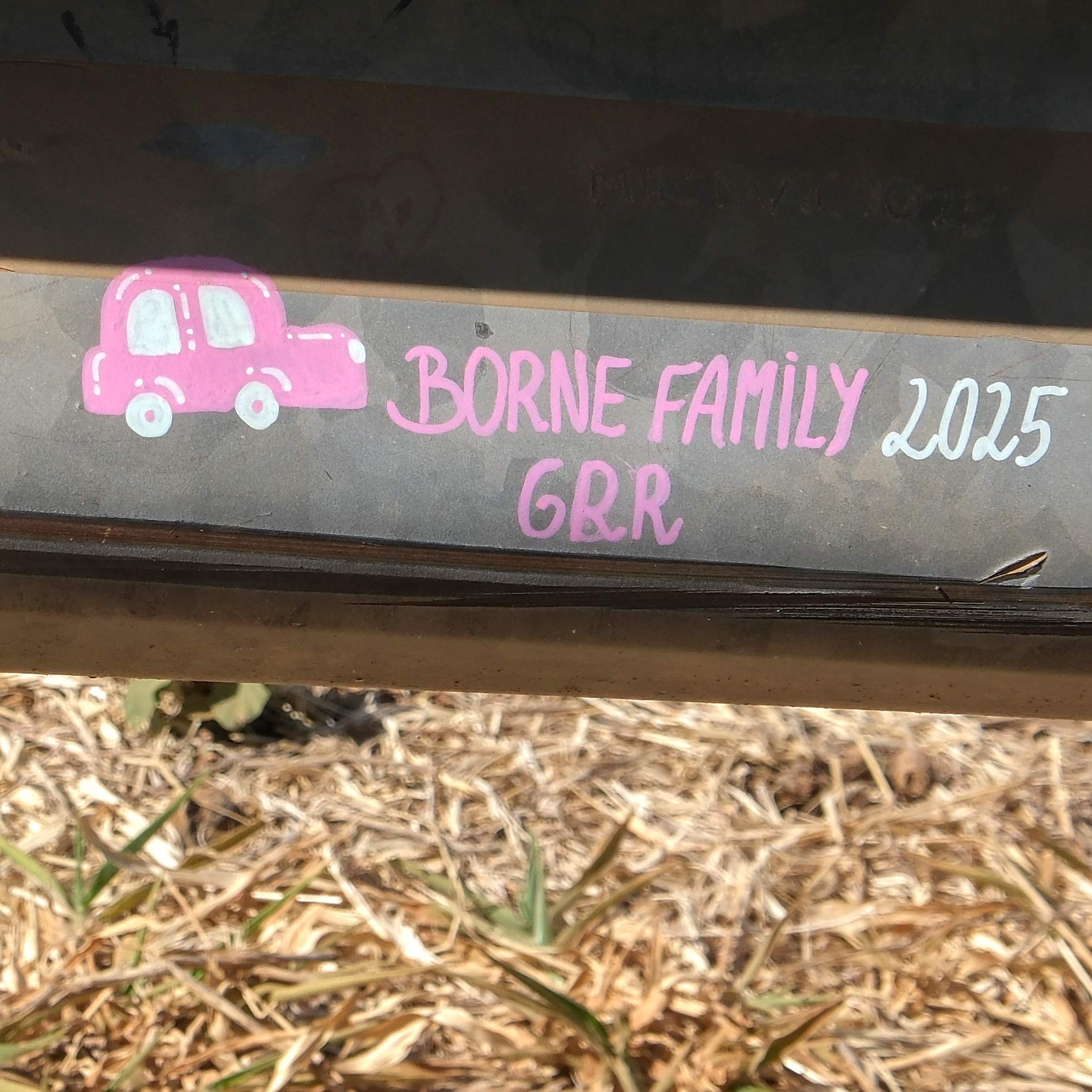 Nette Kleinkunst auf einer Leitplanke an einem Aussichtspunkt.