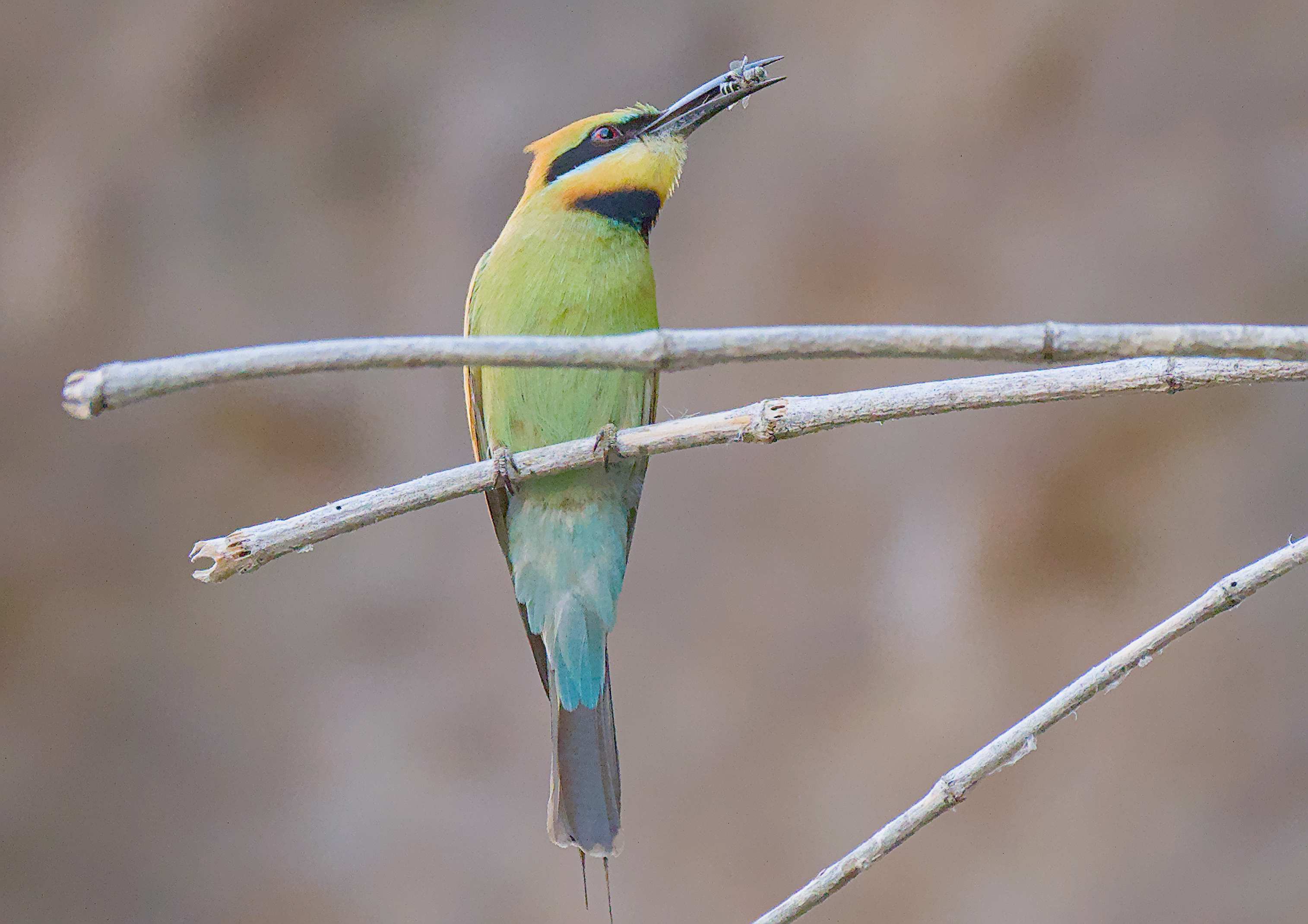 Regenbogenbienenfresser mit Beute.