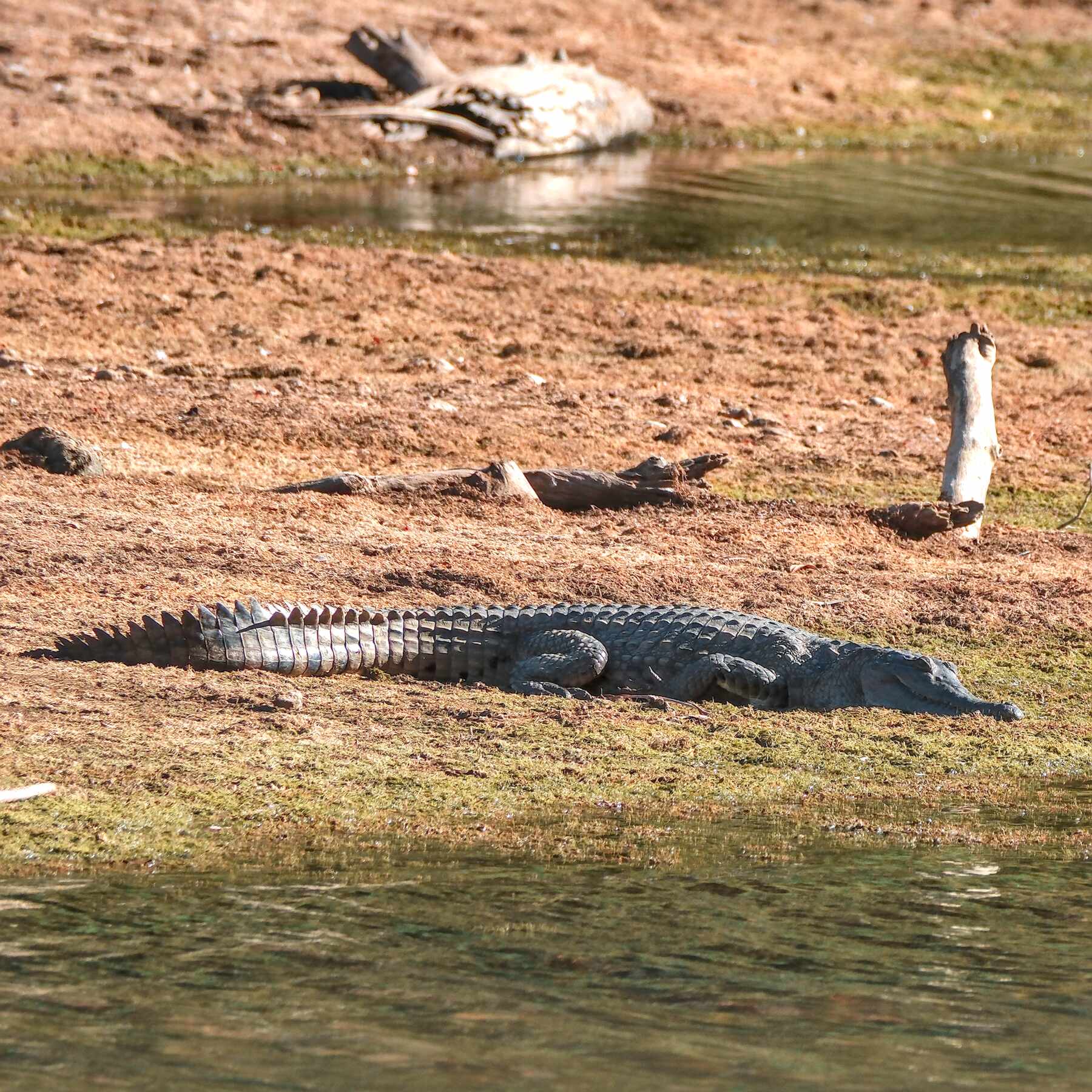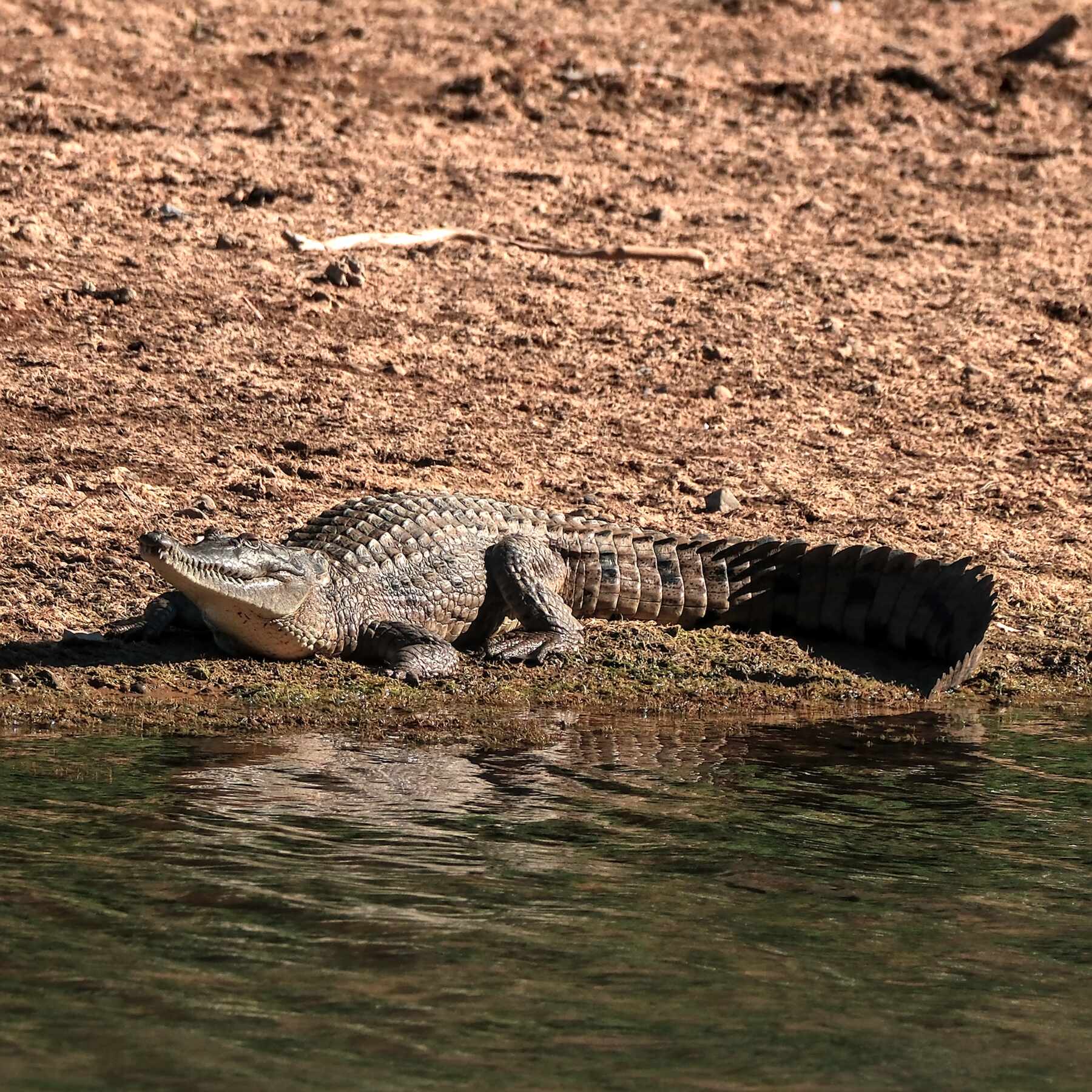 Süßwasserkrokodile sonnen sich dort auf einer Sandbank.