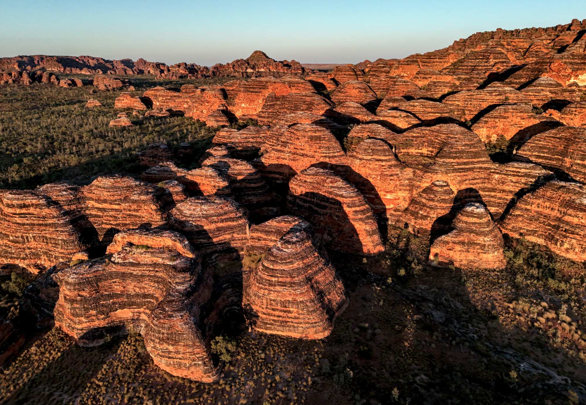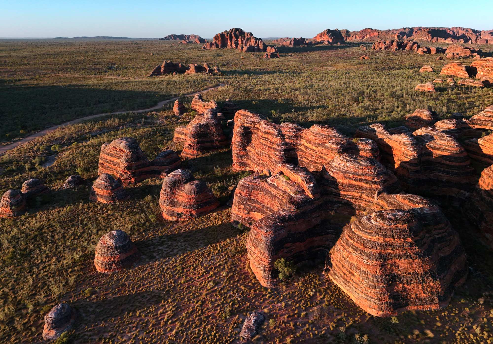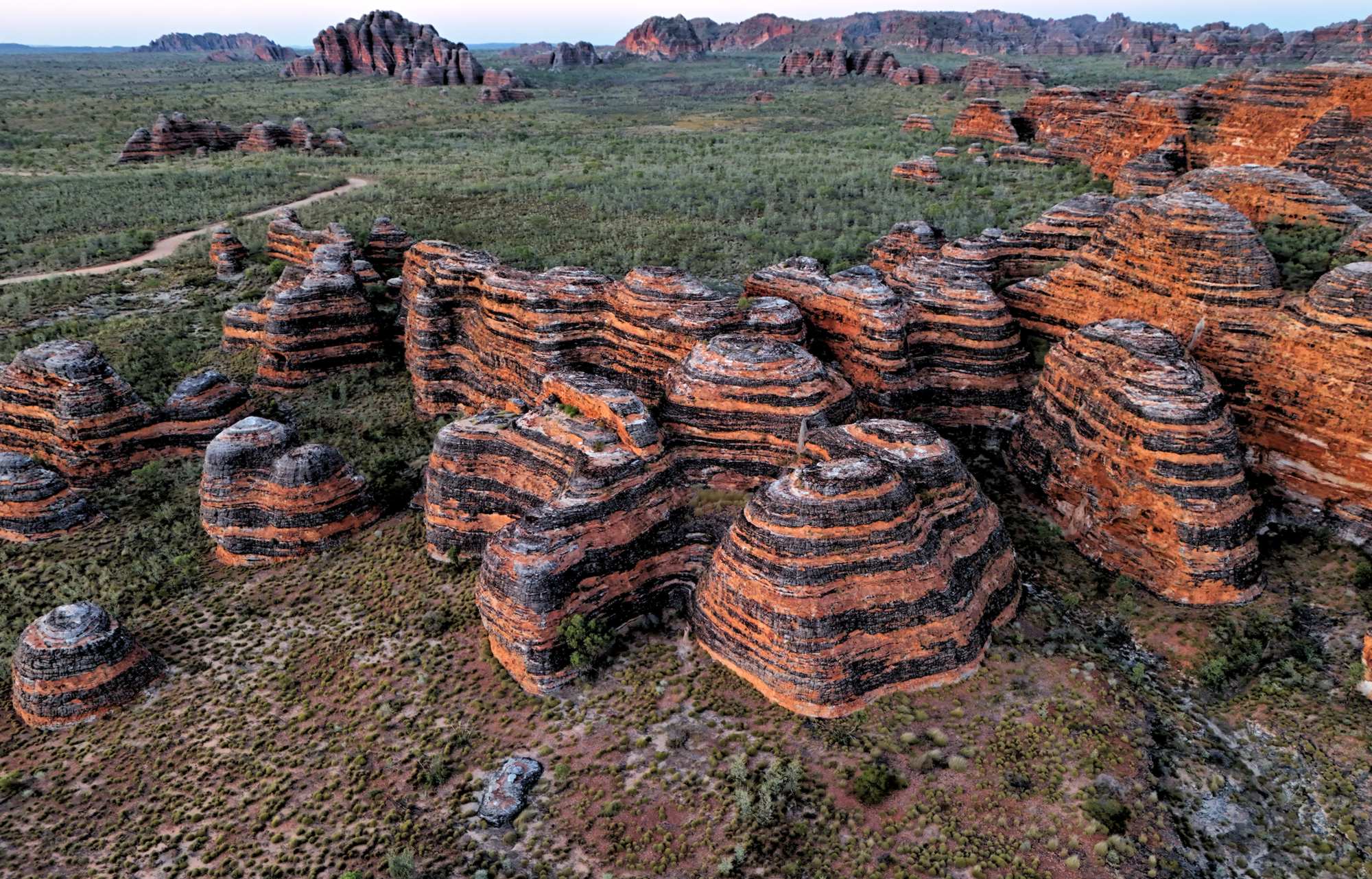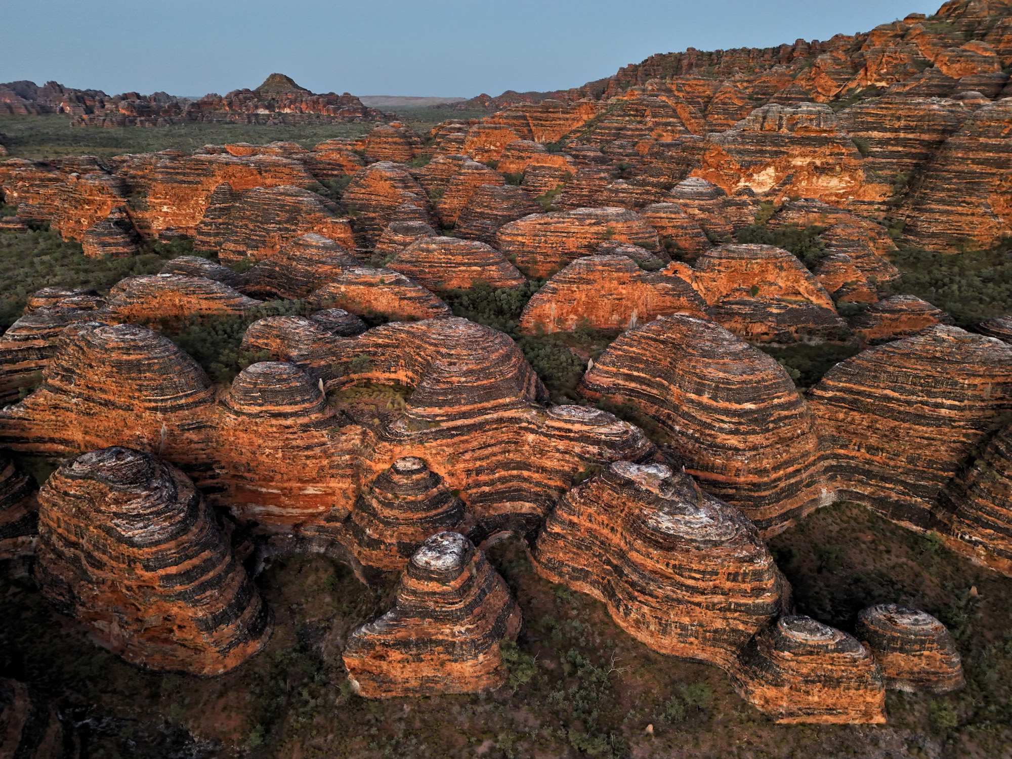 Wie bemerkenswert und einzigartig sind diese bienenstockförmigen Kuppeln? Sie machen etwa 20 % der Bungle Bungle Range aus, ragen 250 m aus den umgebenden Sandebenen empor und sind in ihrer Größe, Ausdehnung, Erhabenheit und Vielfalt weltweit unübertroffen. Sie sind einer der Hauptgründe für die Aufnahme Purnululus in die UNESCO-Welterbeliste im Jahr 2003.