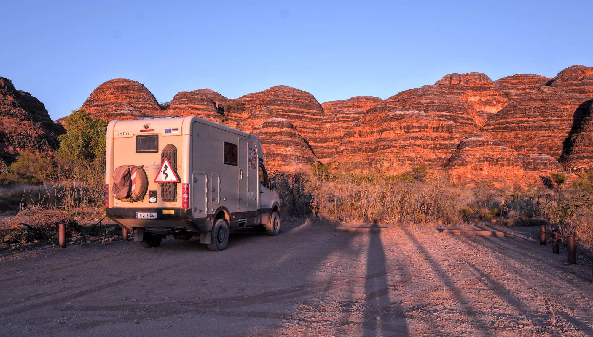 Gestern dann um 4:15 Uhr gestartet und noch gut vor Sonnenaufgang bei den 'Bungle Bungles' angekommen. Die berühmten, weltweit einzigartigen "Bienenkörbe" (Domes), wegen ihrer Form und der orange-schwarzen Streifen, erstrahlten im ersten Sonnenlicht unheimlich schön.