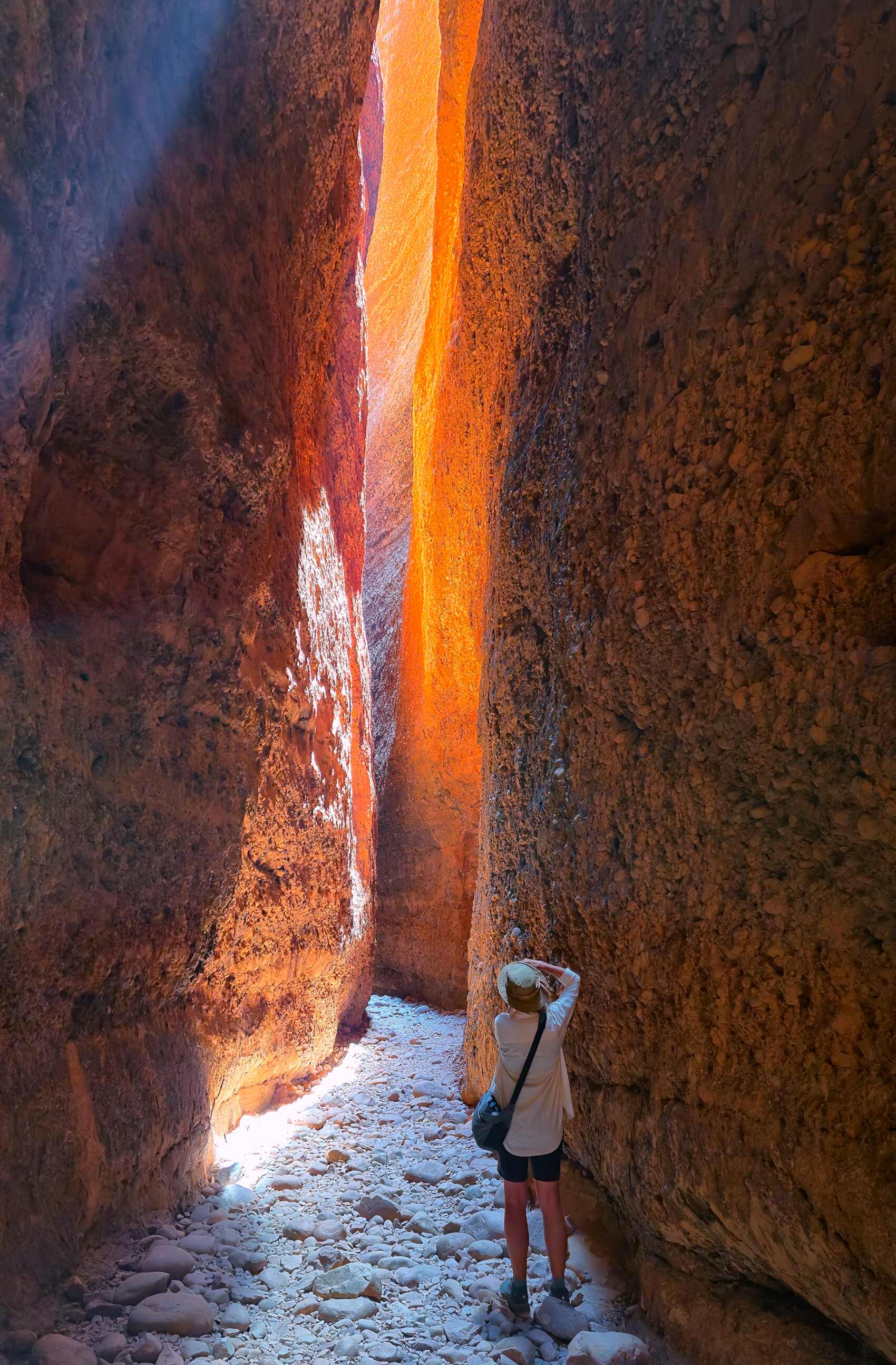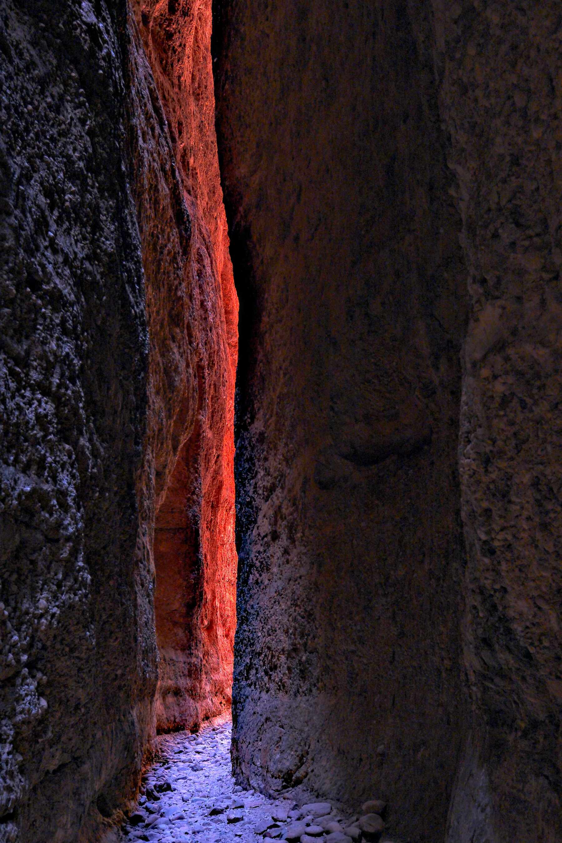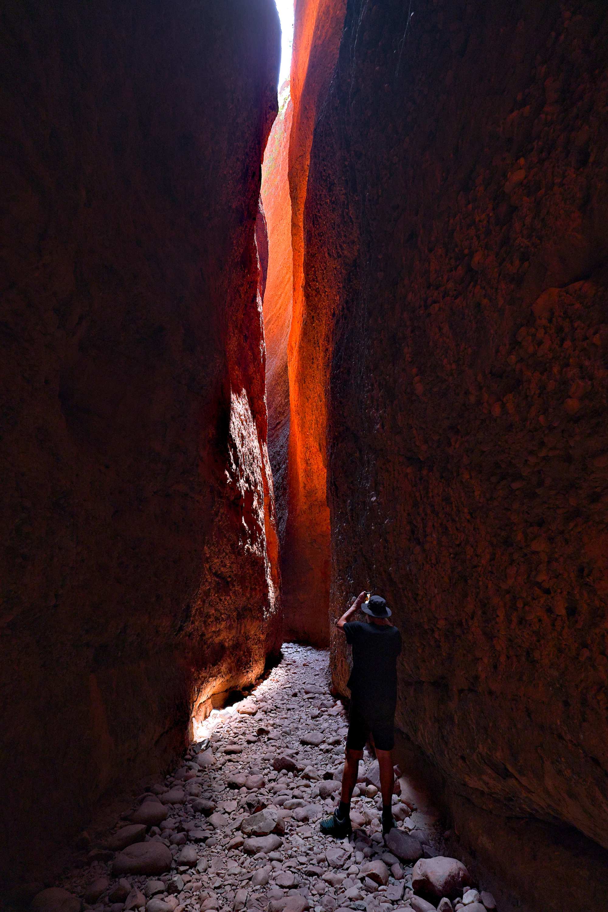 Anschließend sind wir zum nördlichen Campground, von wo aus wir heute morgen zur 'Echidna Chasm (Kluft)' gefahren sind. Bis zu zweihundert Meter ragen die rötlichen Seitenwände senkrecht nach oben und haben teilweise nur 50 cm Abstand voneinander. Zur richtigen Zeit, wir bekamen einen Tipp, erstrahlen die Wände in rotgoldener Farbe, umwerfend anzuschauen.
