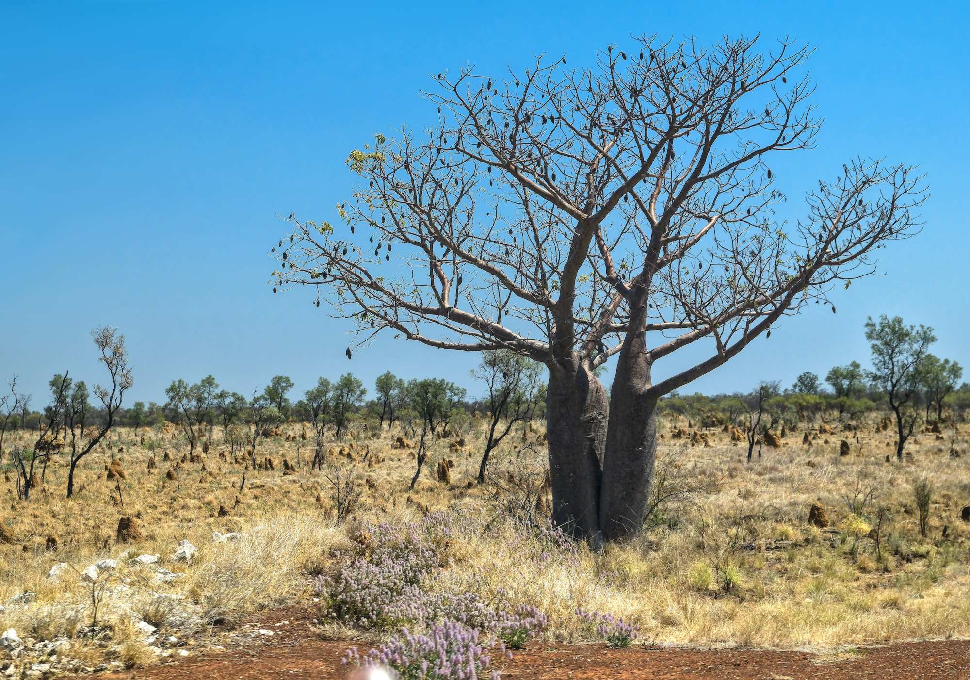 Termitenbauten und Boabs säumen unseren Weg.